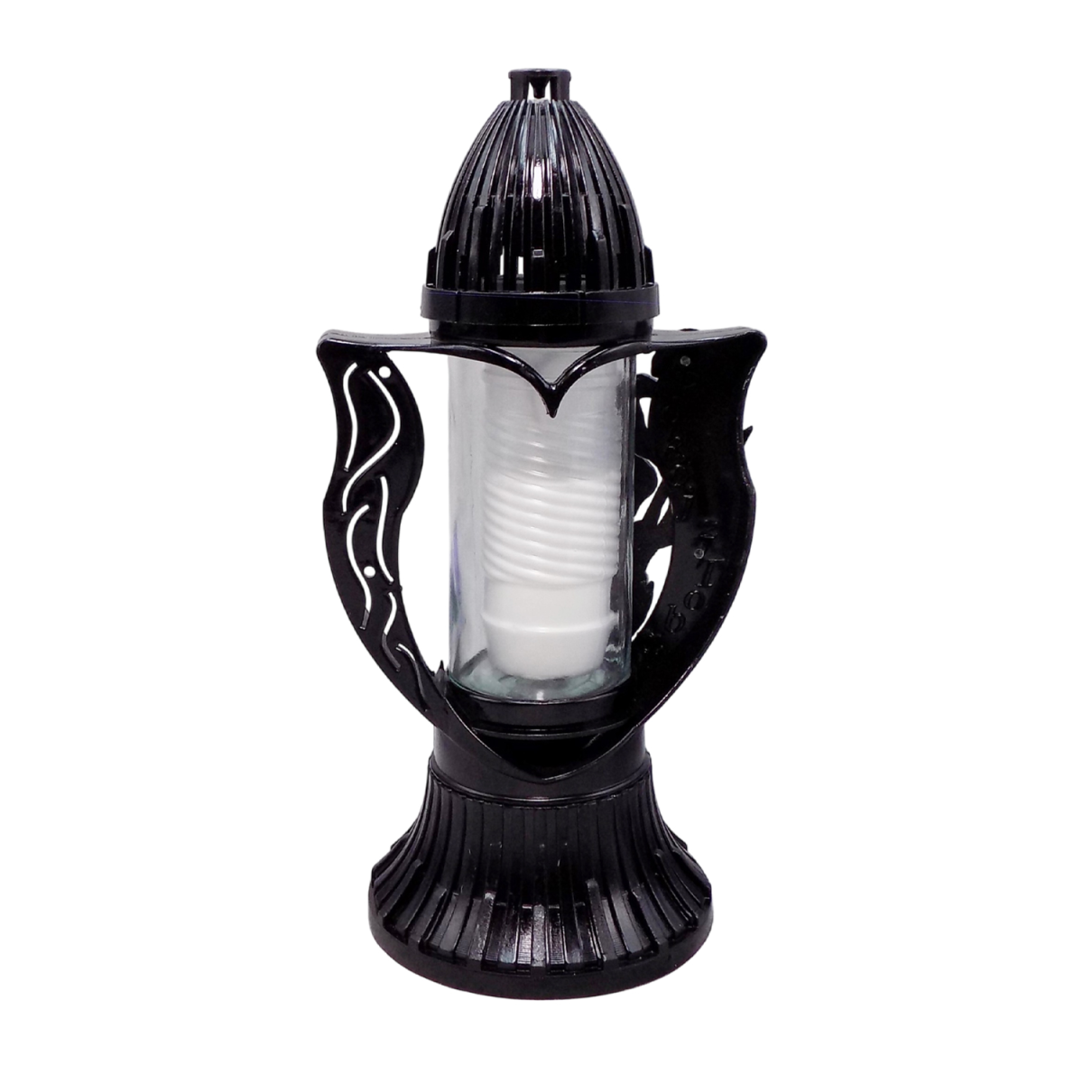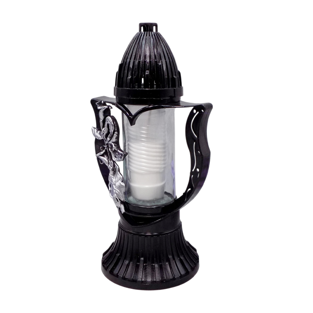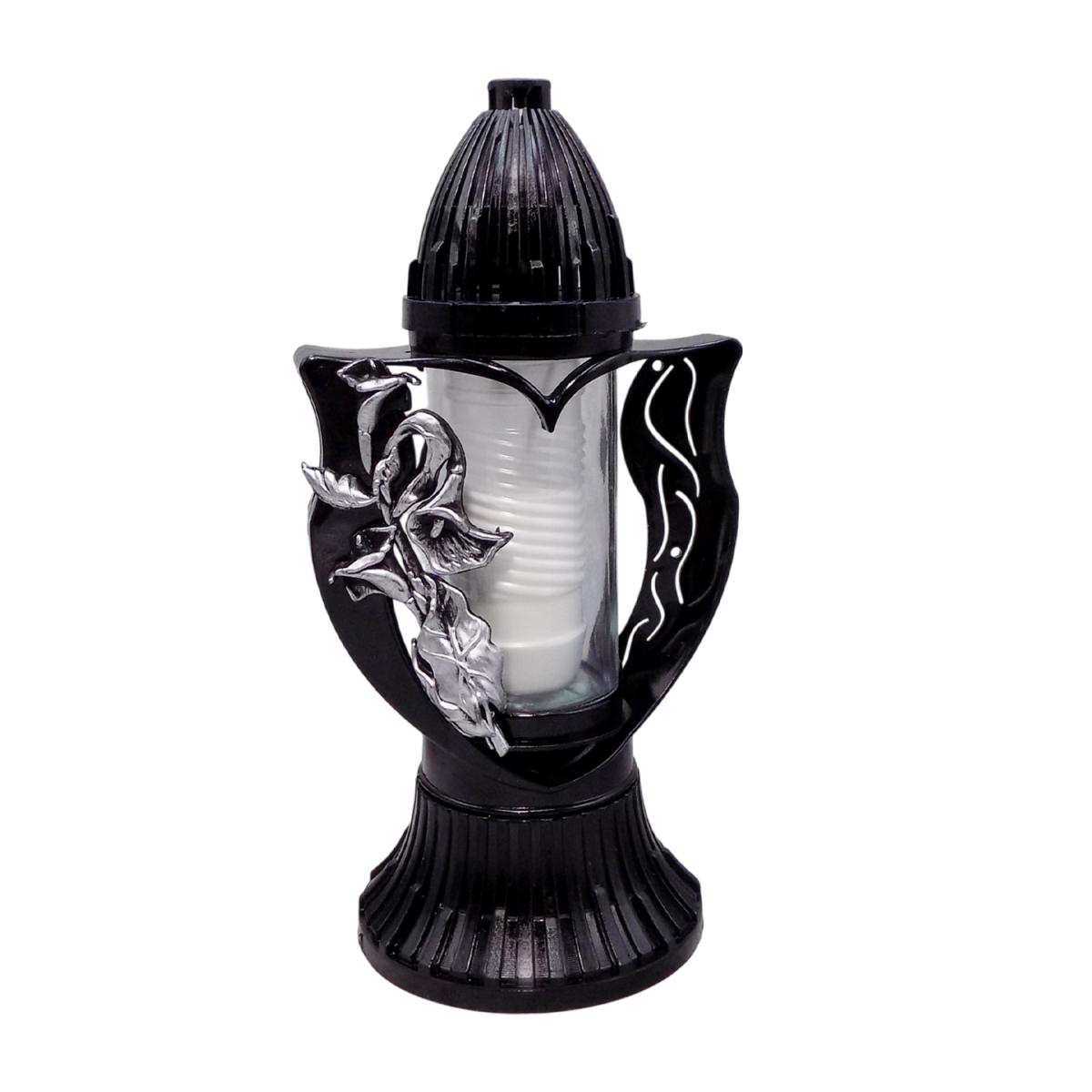 Декоративний елемент у вигляді квітки додає виробу елегантності та виразності, роблячи лампадку не лише практичною, а й естетично привабливою. Корпус виконаний із міцного матеріалу, що забезпечує надійний захист скляної частини та стійкість конструкції.