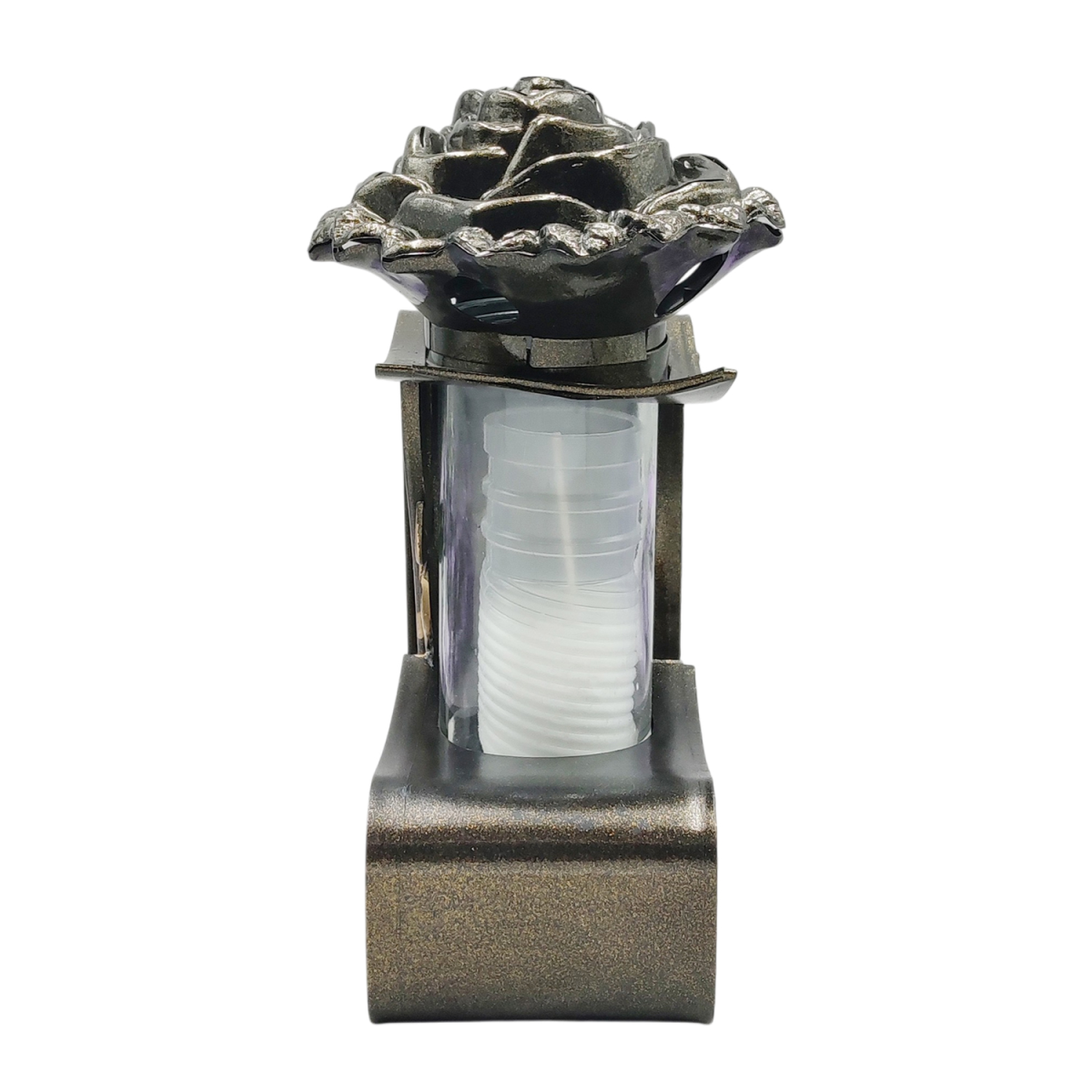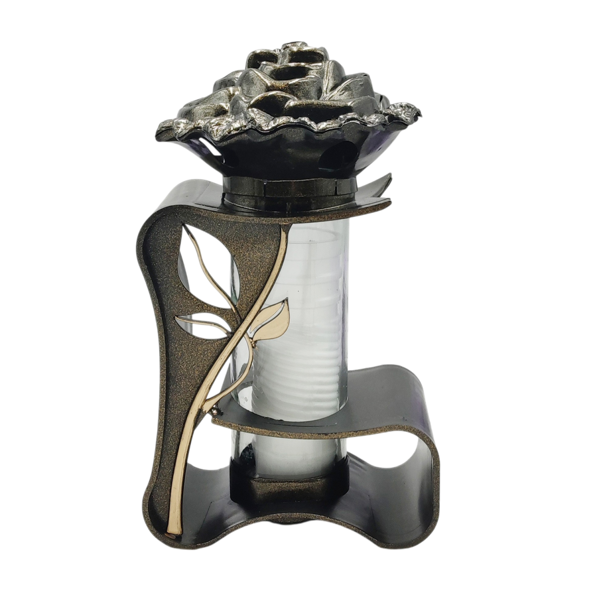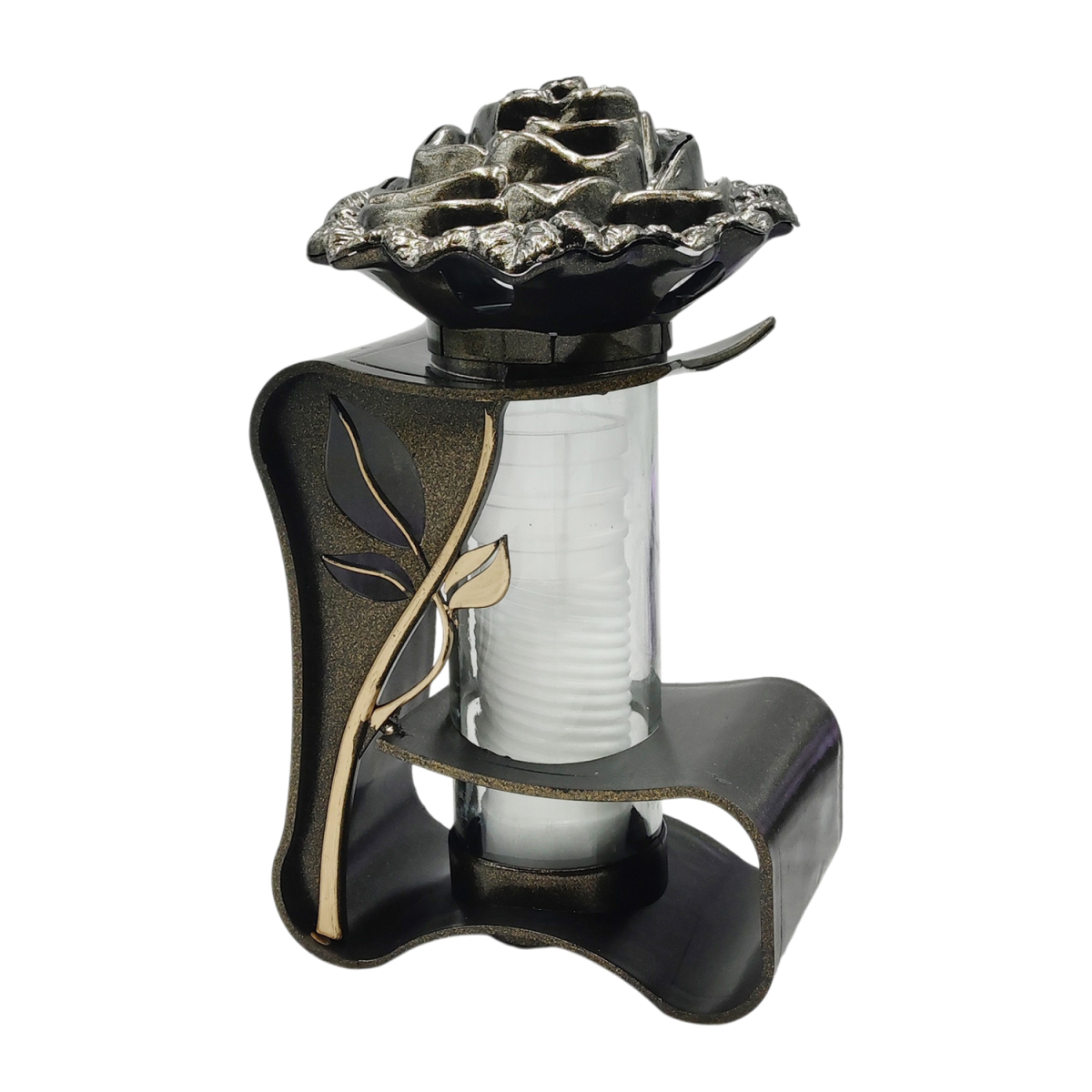 Оригінальний дизайн із декоративними елементами та скляною вставкою створює красиве, м’яке світіння свічки. Верхня частина у вигляді квітки додає лампадці витонченості та особливого шарму.
