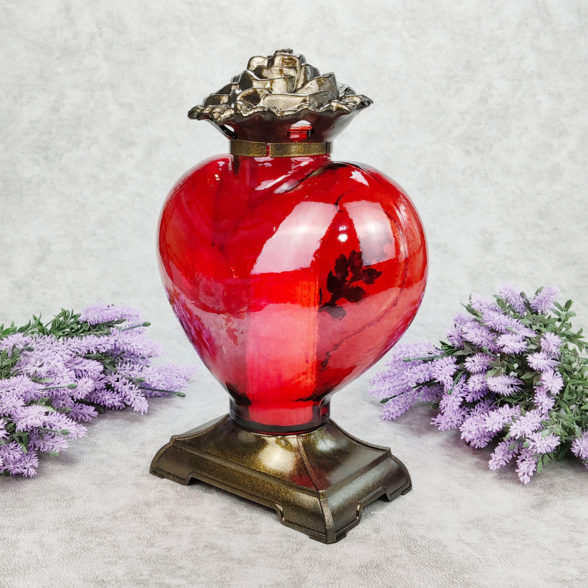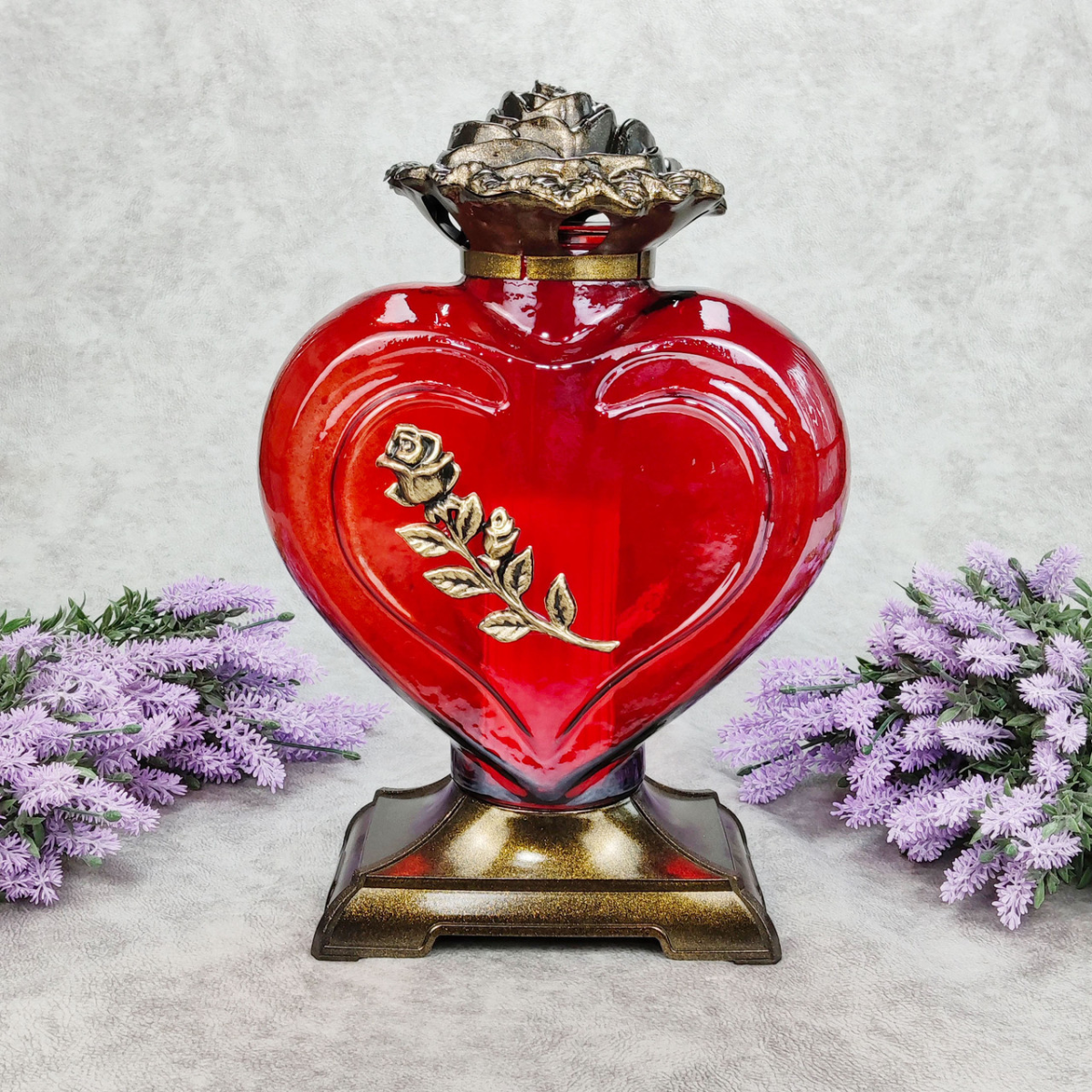 Лампадка скляна велика серце червона з золотистою трояндою Serce Ornament 45год