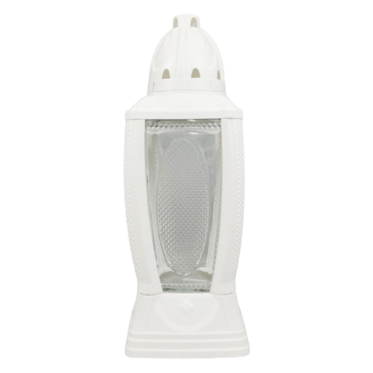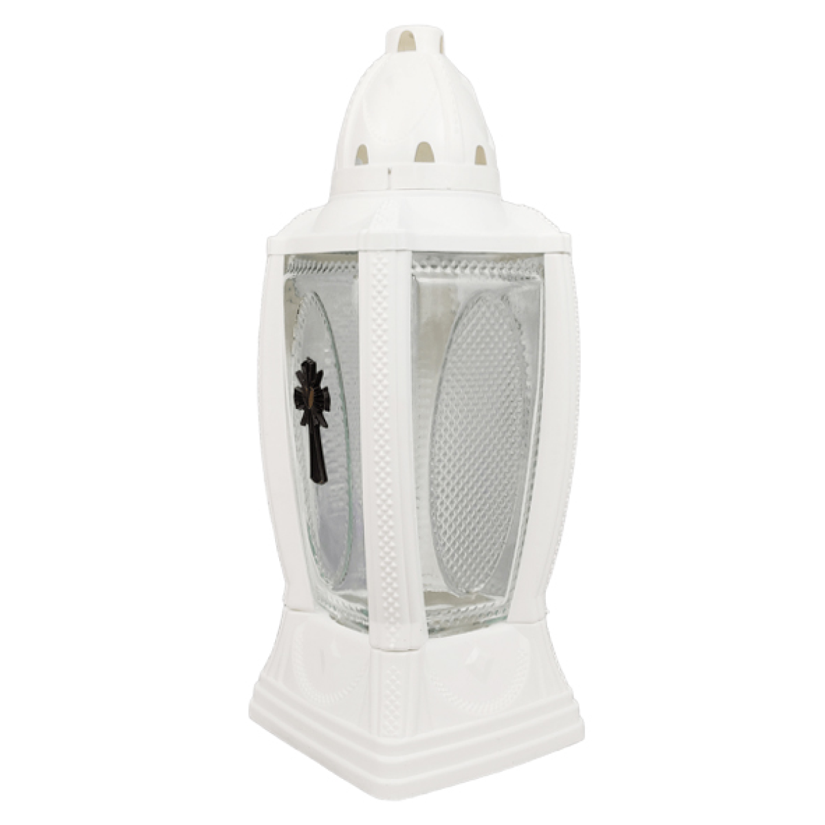 Лампадка меморіальна велика скляна з хрестом біла 355KA