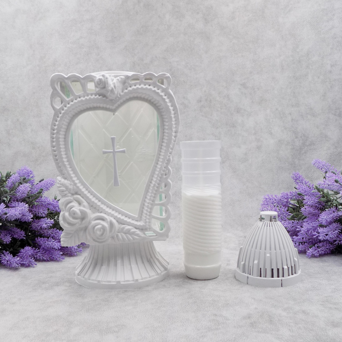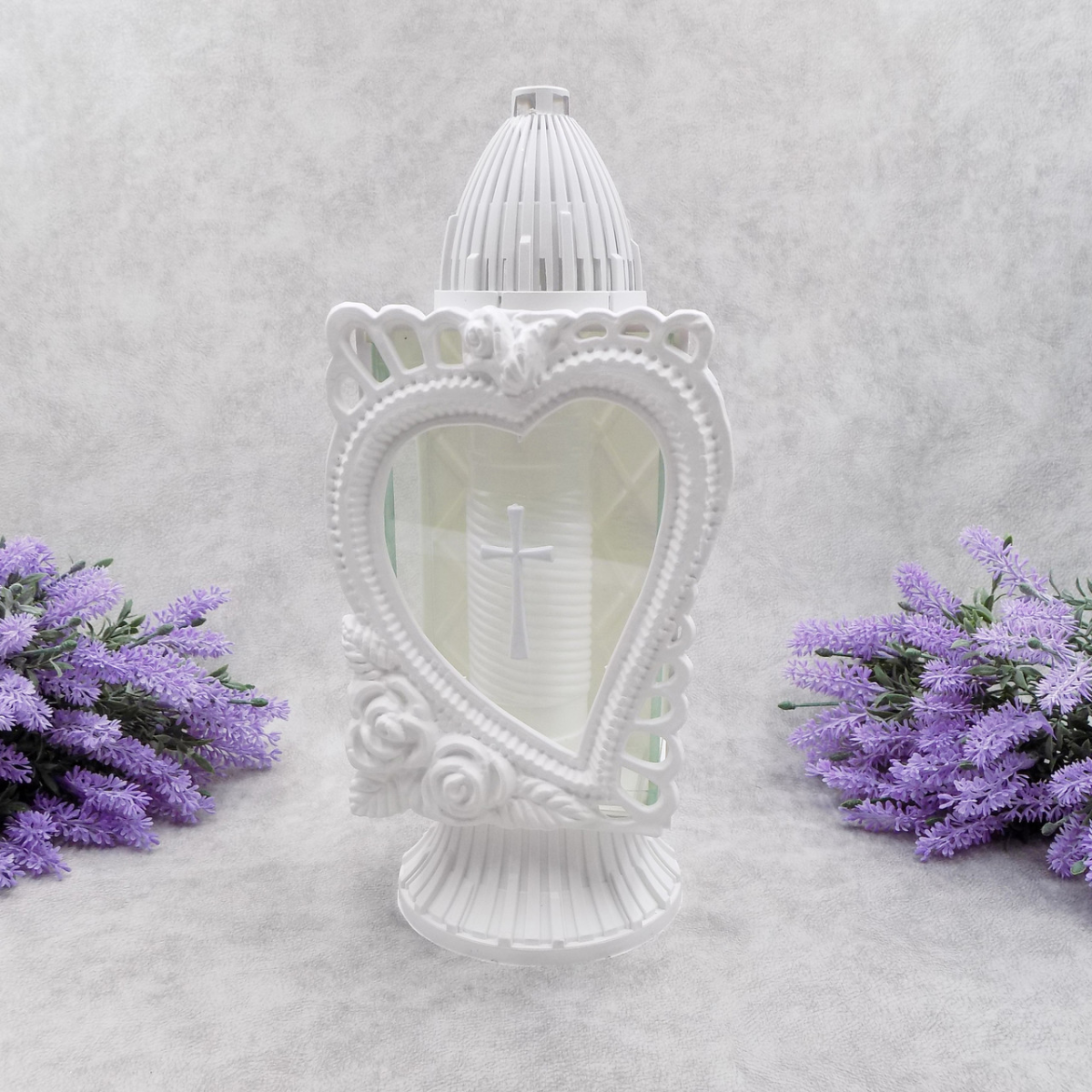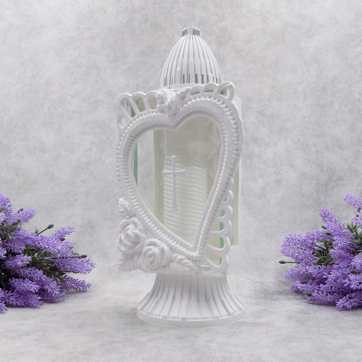 Лампадка капличка середня біла з серцем Glass Art 33год