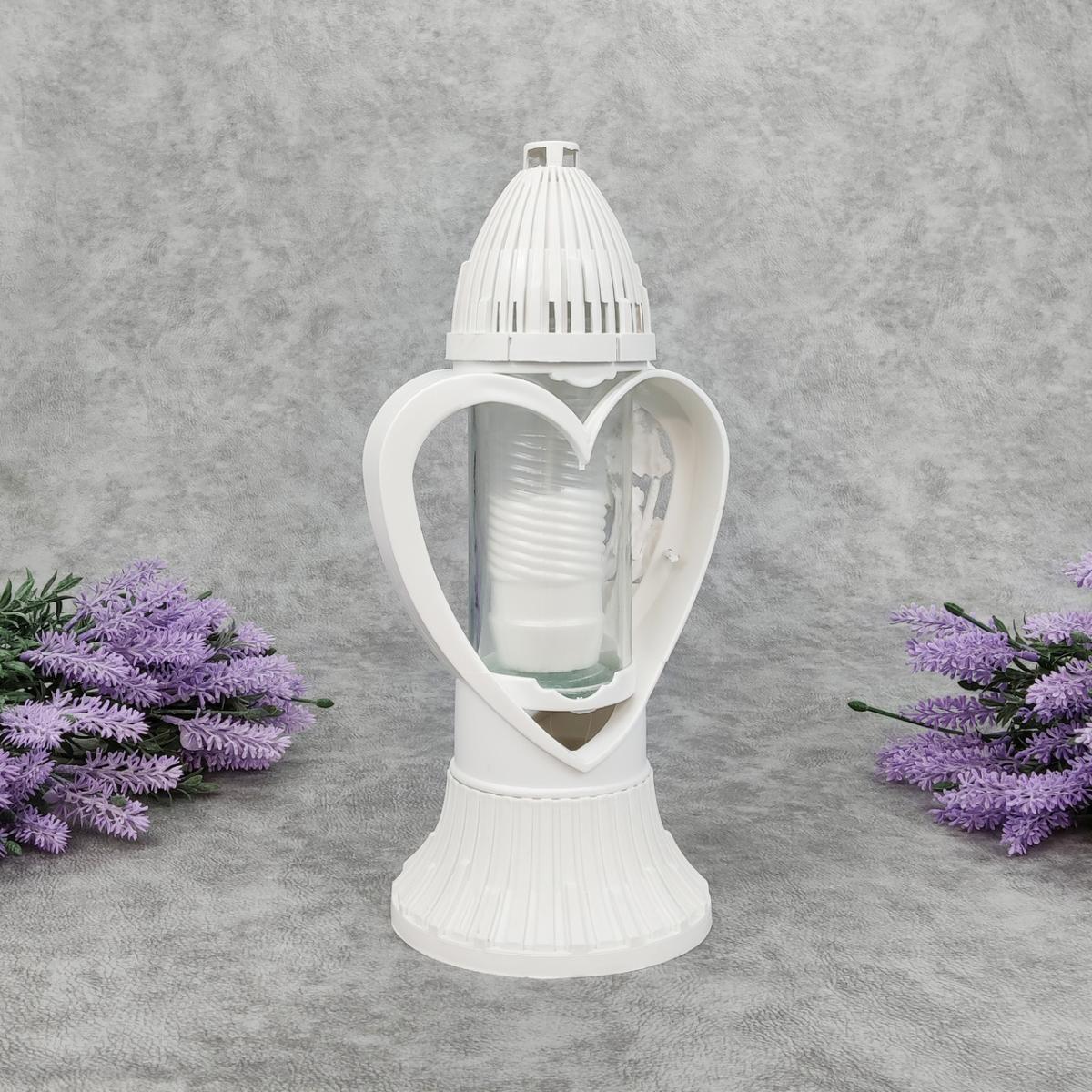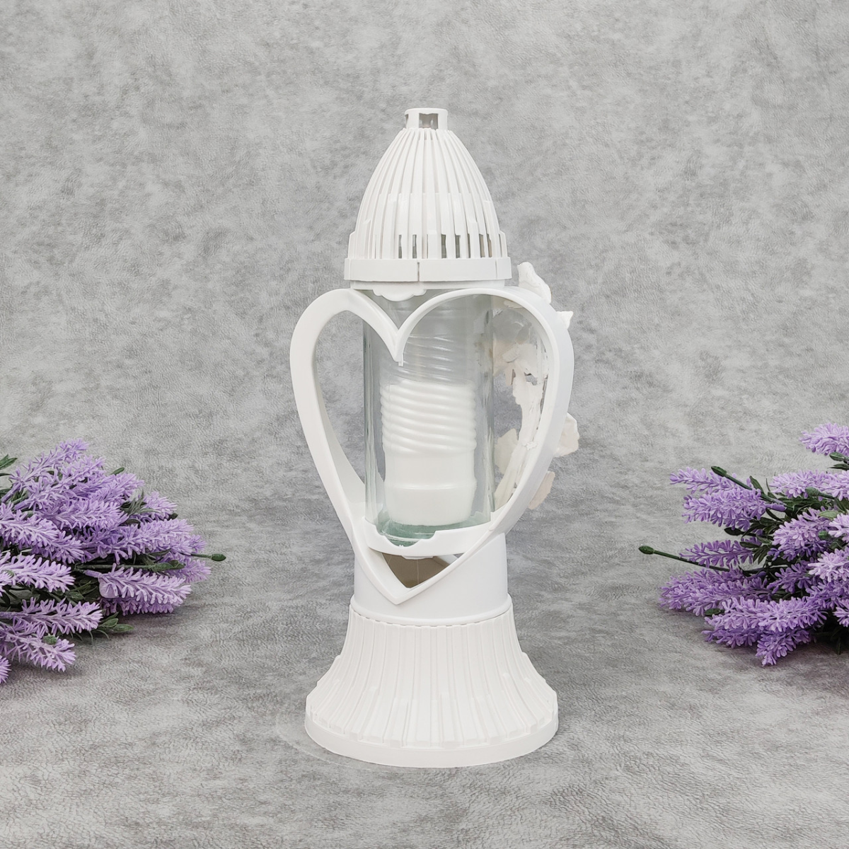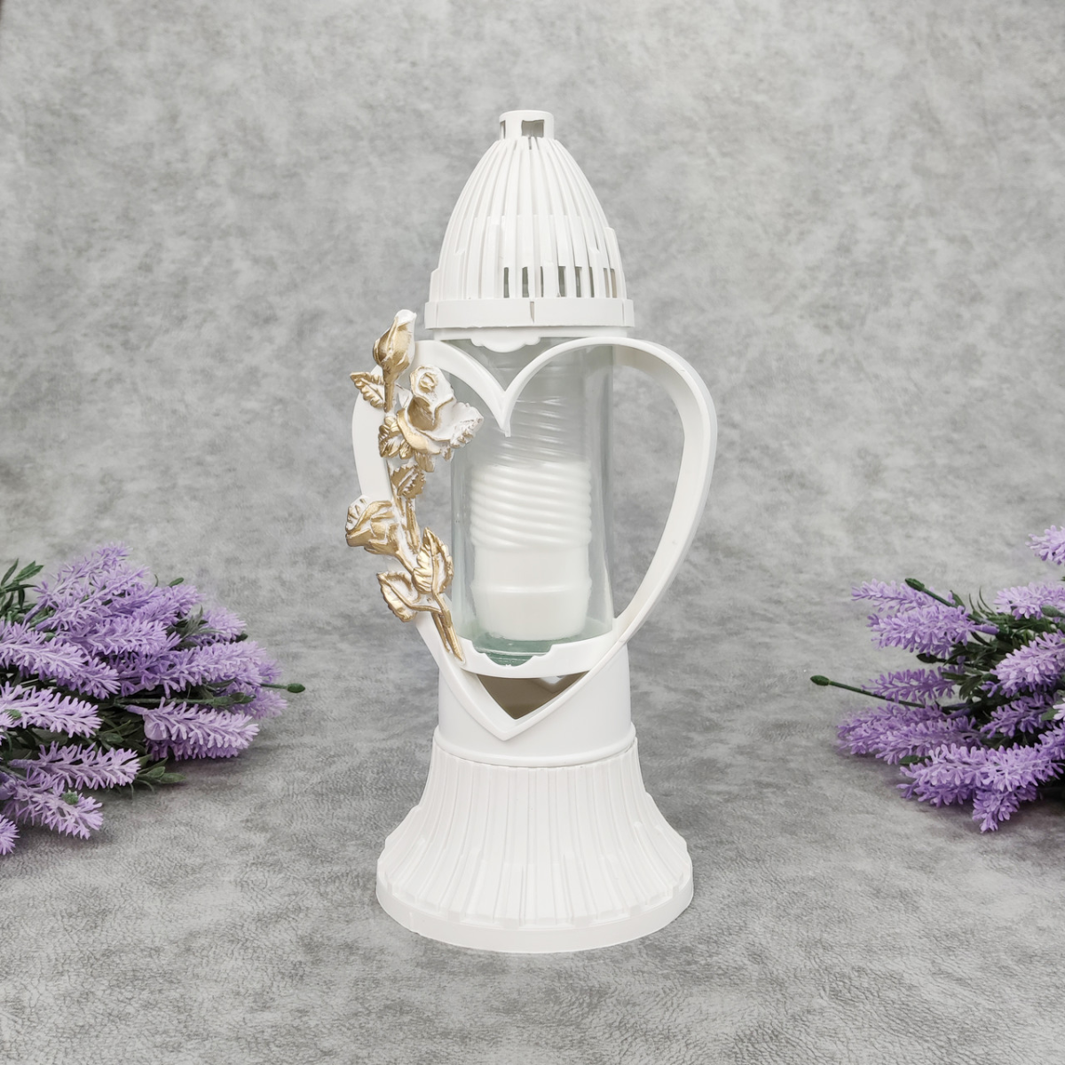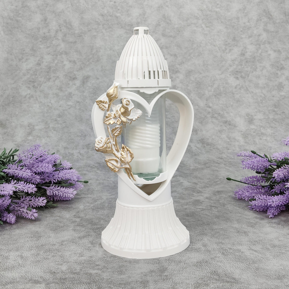 Лампадка середня Пам’ять у серці 3D біла з золотистою трояндою