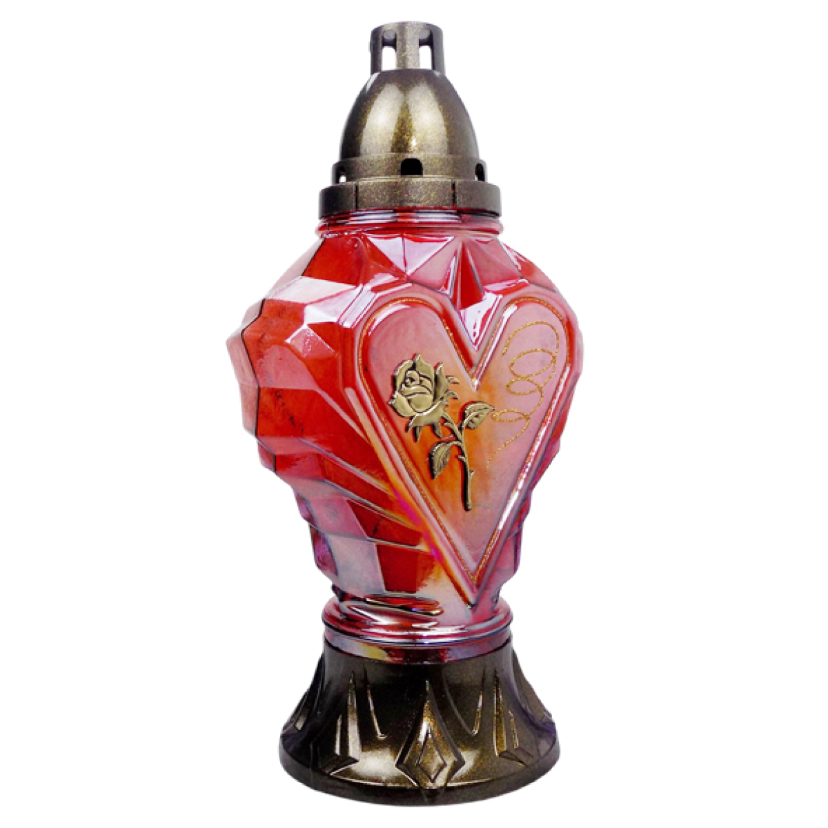Лампадка у формі серця — витончений символ світлої пам’яті, любові та поваги до близьких. Оригінальний гранований корпус створює красиву гру світла, а центральний елемент у вигляді серця з декоративною трояндою додає виробу особливої емоційності та глибини.