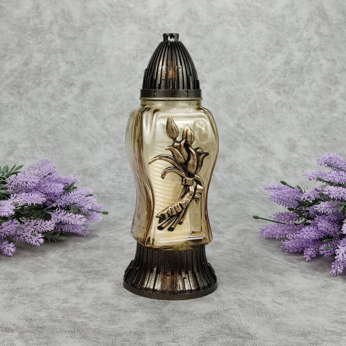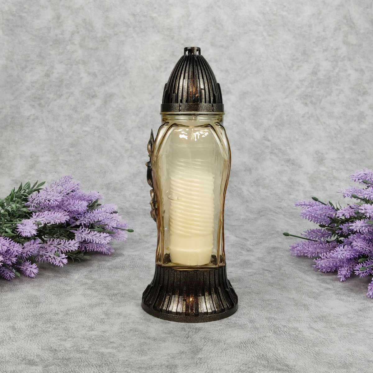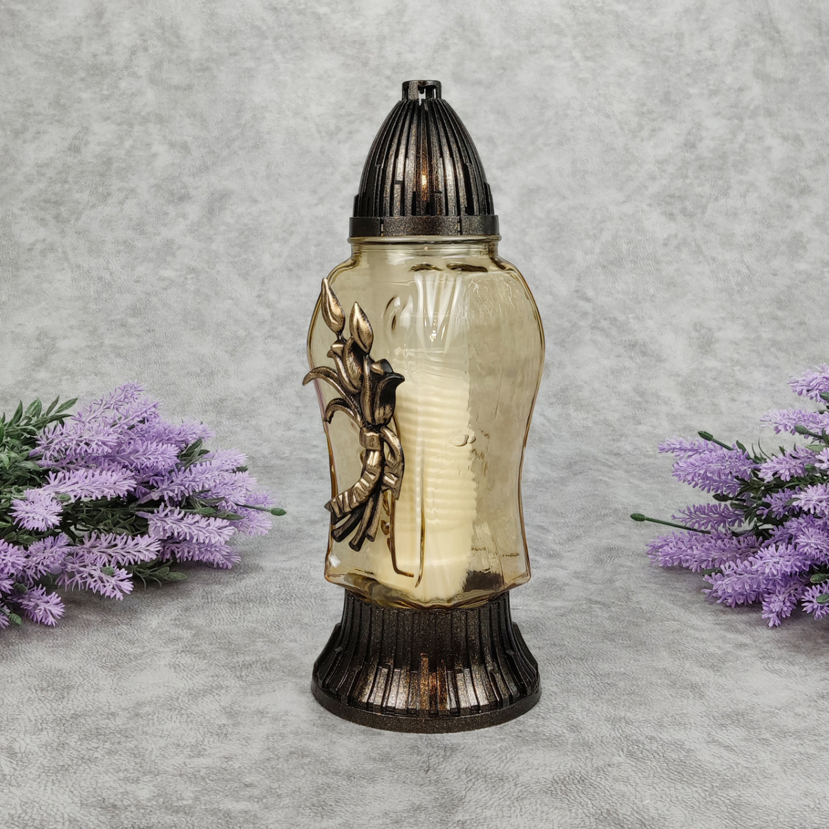 Лампадка скляна середня з аплікацією квіти LP437 Apl 20 год
