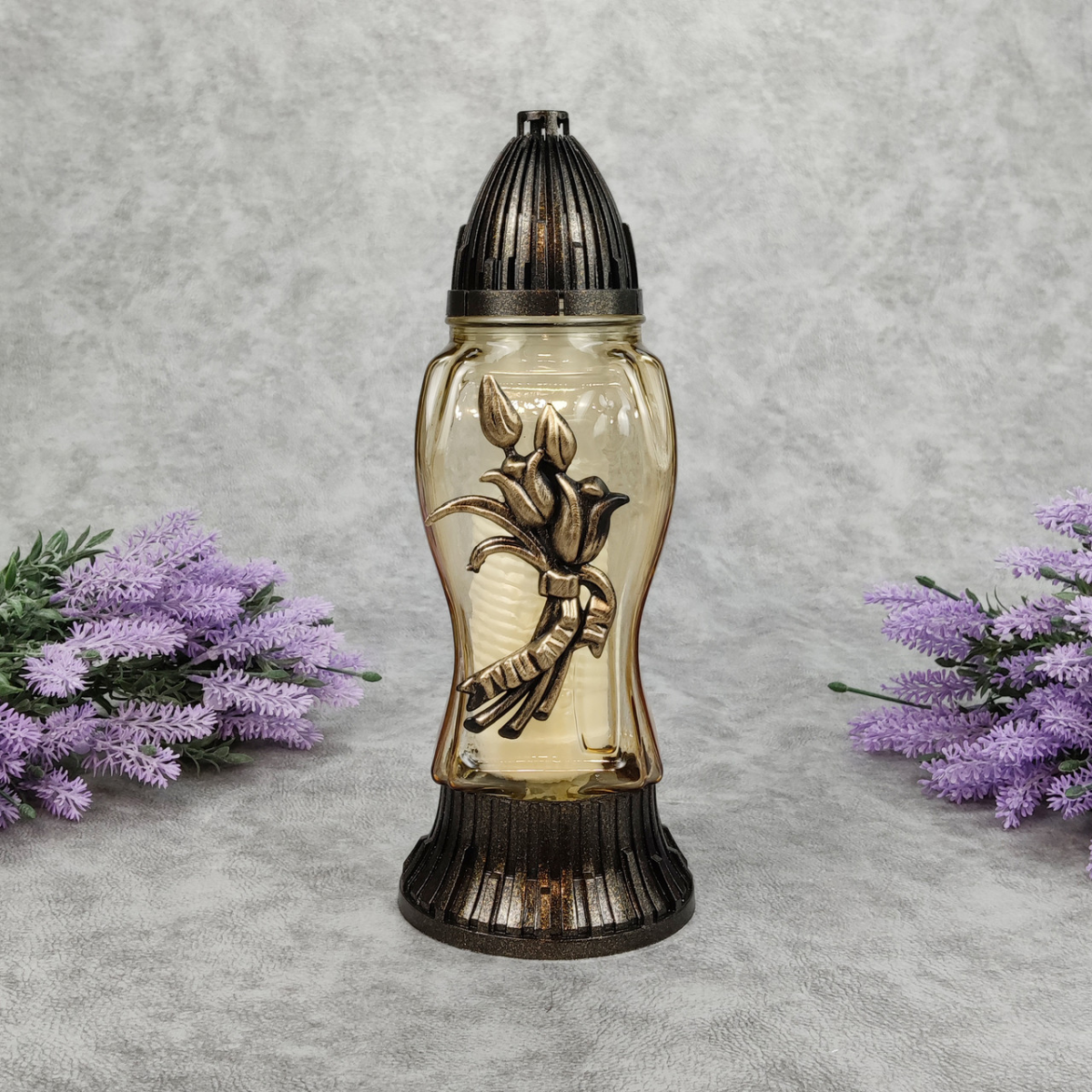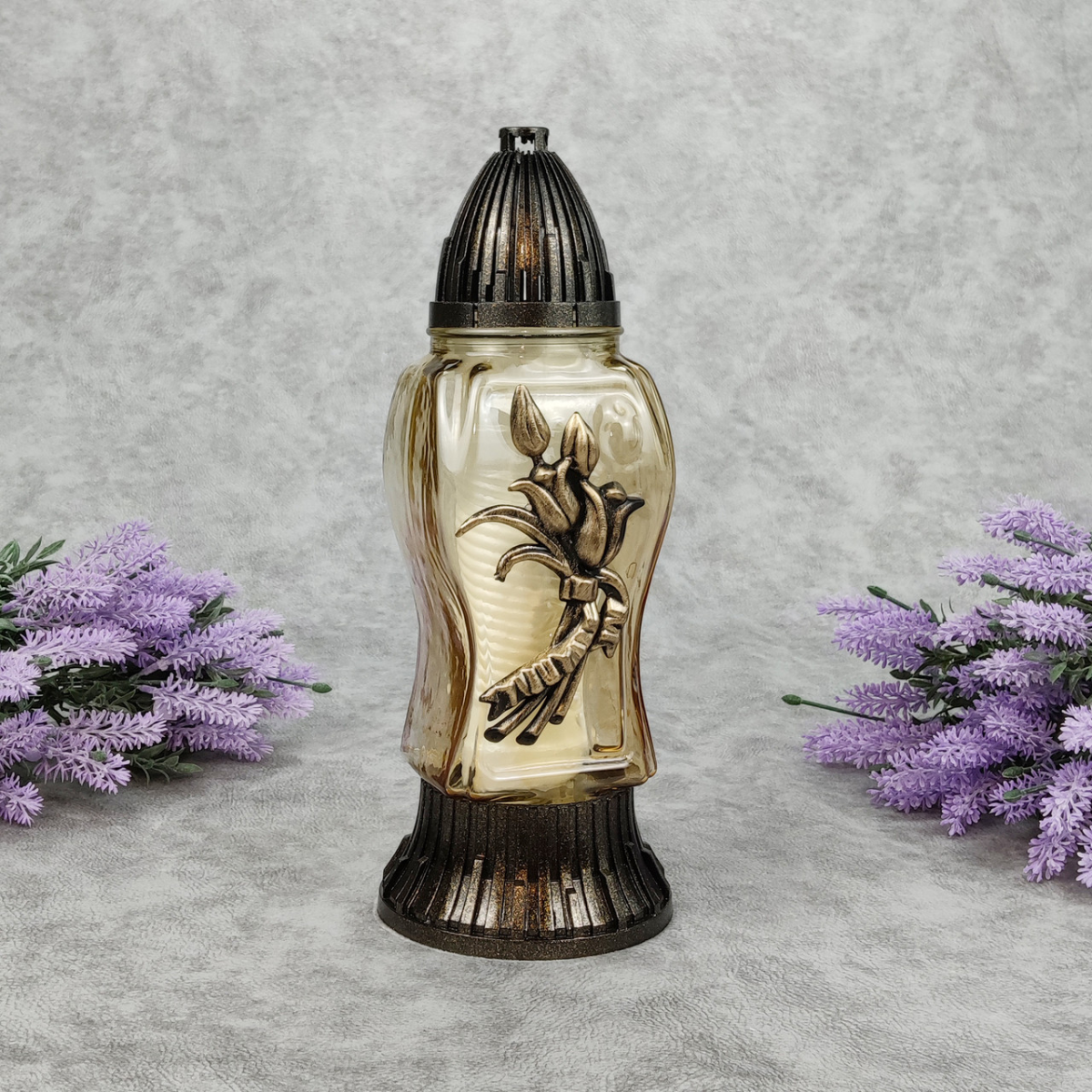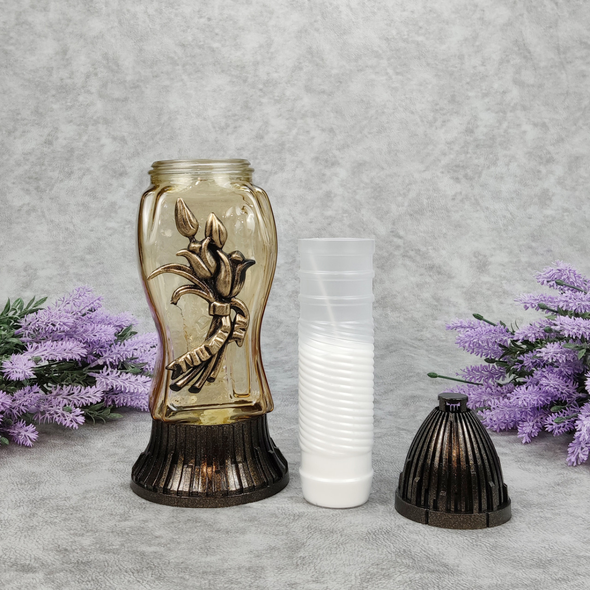 Лампадка скляна середня з аплікацією квіти LP437 Apl 20 год