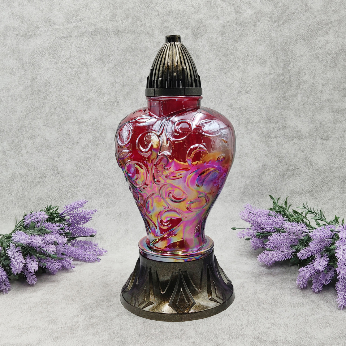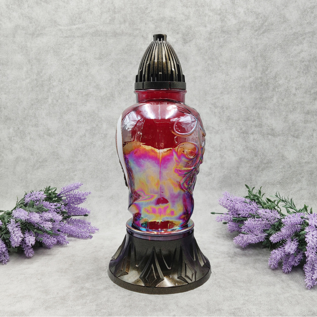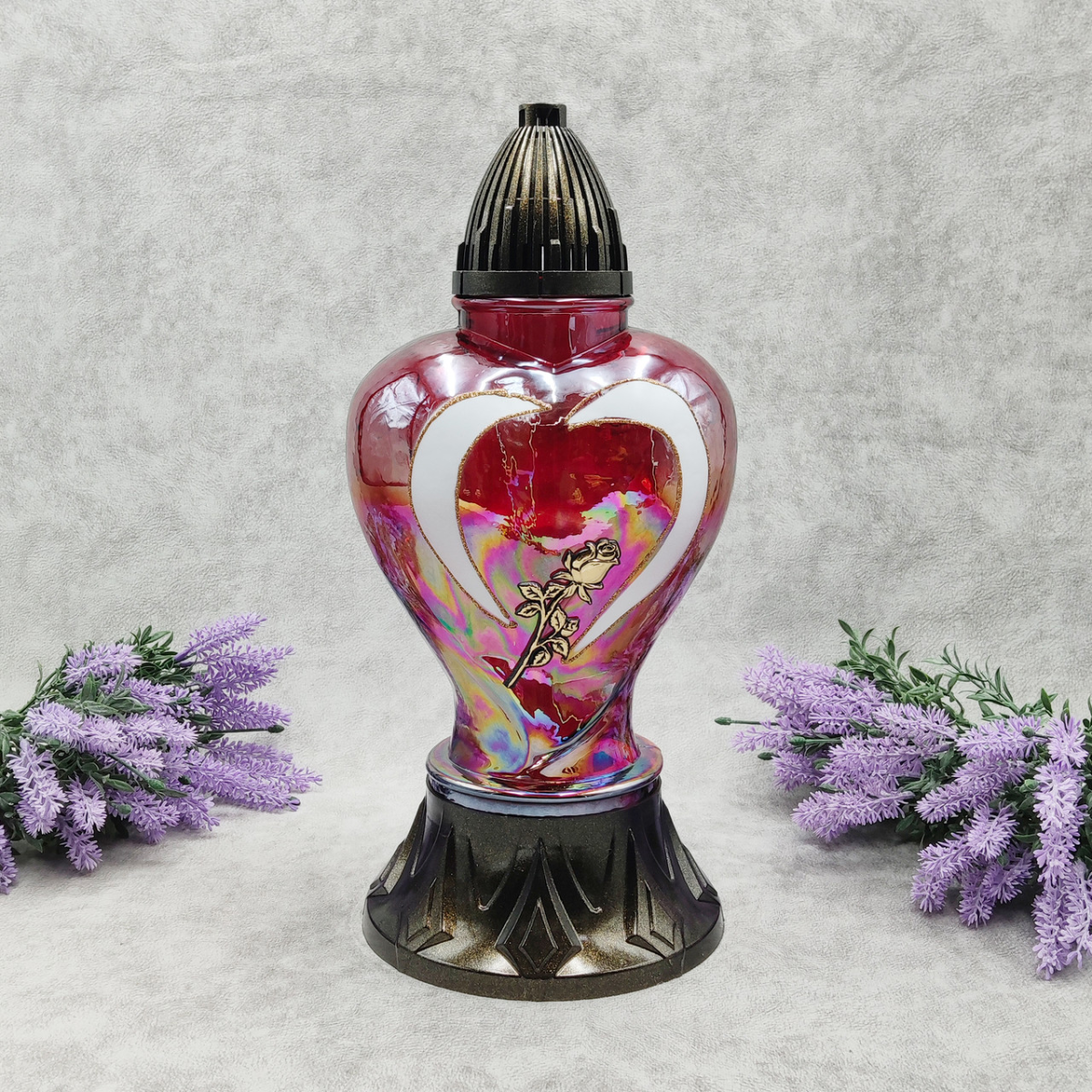 Лампадка скляна велика серце з трояндою Lampion Серце Живиця червона 45 год