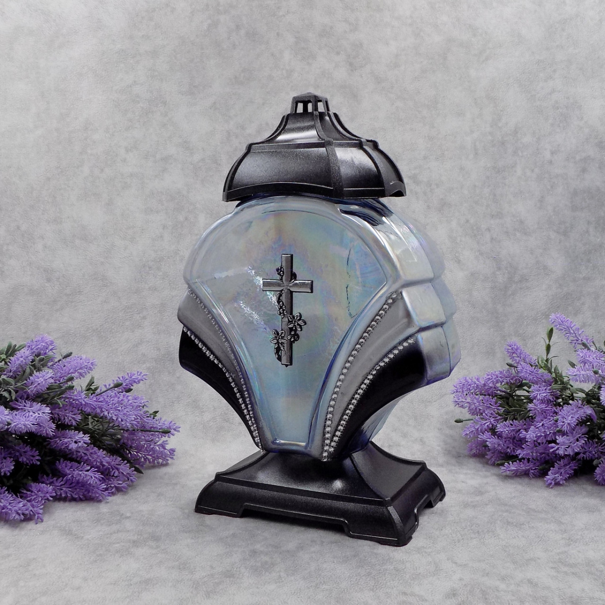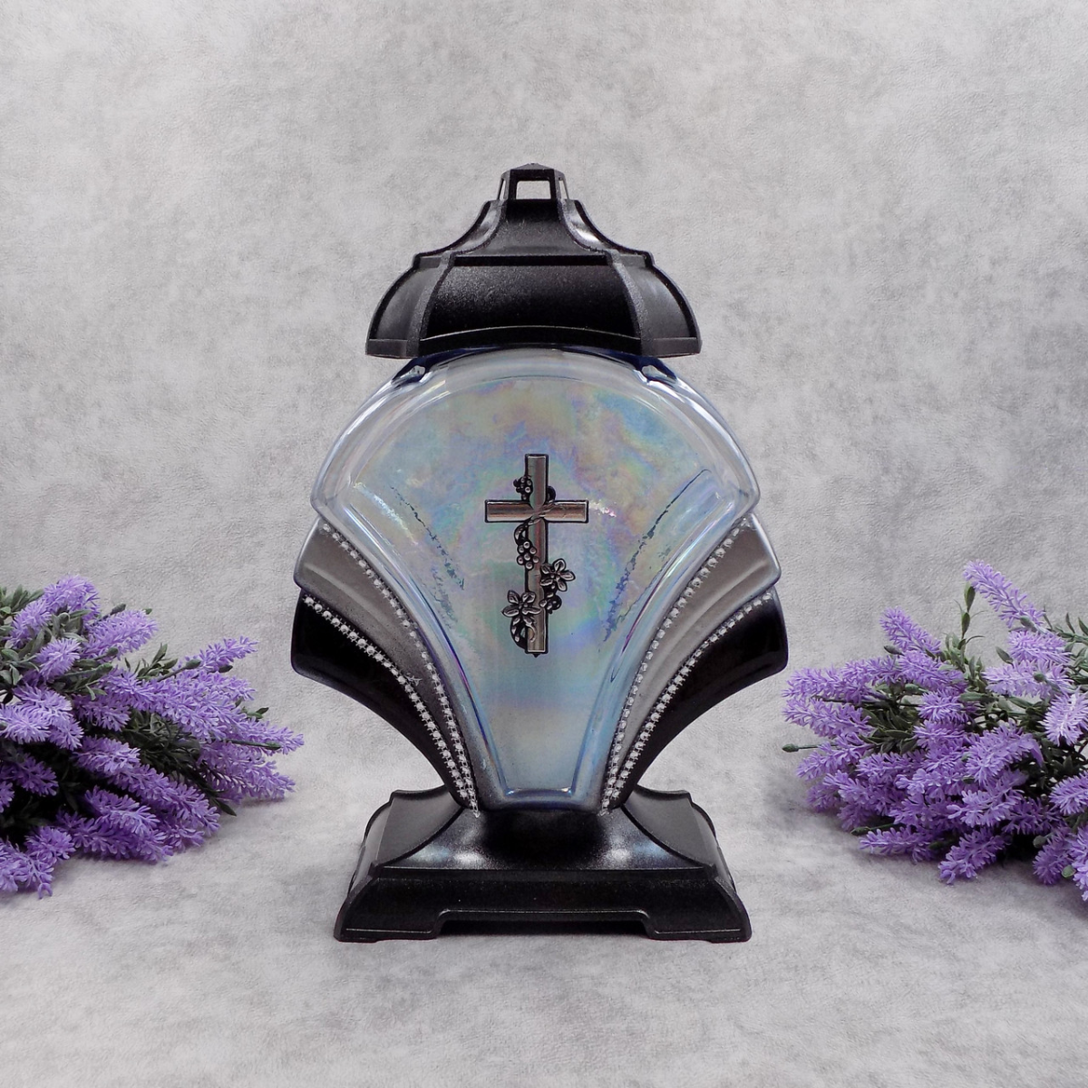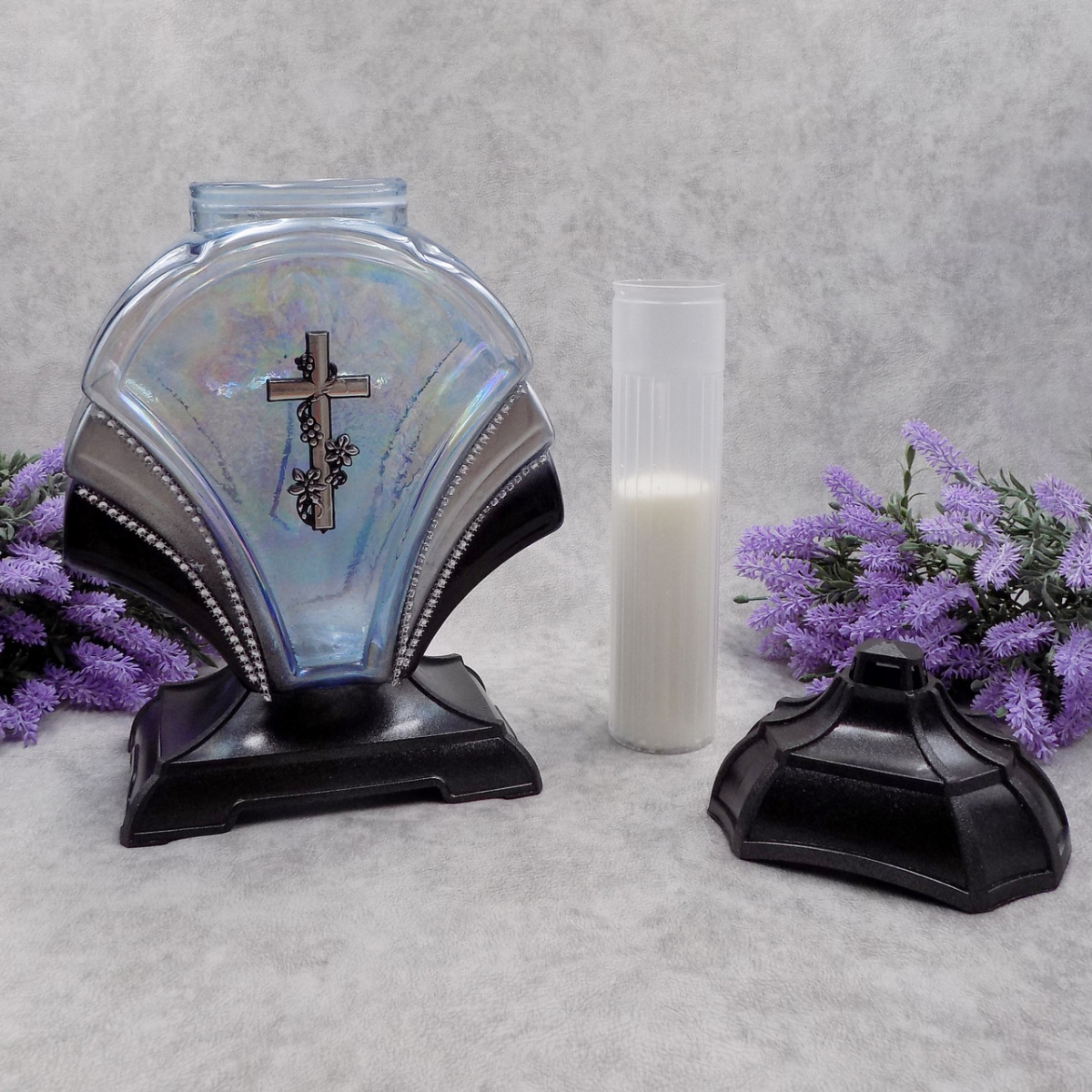 Лампадка зі свічкою-запаскою - виготовлена з високоякісних матеріалів, не містить токсичних речовин, не коптить і абсолютно безпечна для здоров“я. Матеріал: скло/пластик Час горіння свічки: ≈ 45 год Пакування: 5 шт Висота: 36 см Ширина: 22 см Глибина: 12 см Вага: 1,4 кг Призначено для використання: цвинтар, пам“ятні заходи та меморіали тільки зовнішнє використання простота у використанні, можливість зміни свічки без зміни лампадки може використовуватися як зі свічками, так і з лампами LED стійка основа забезпечує розміщення на різних поверхнях і мінімізує можливість перекидання