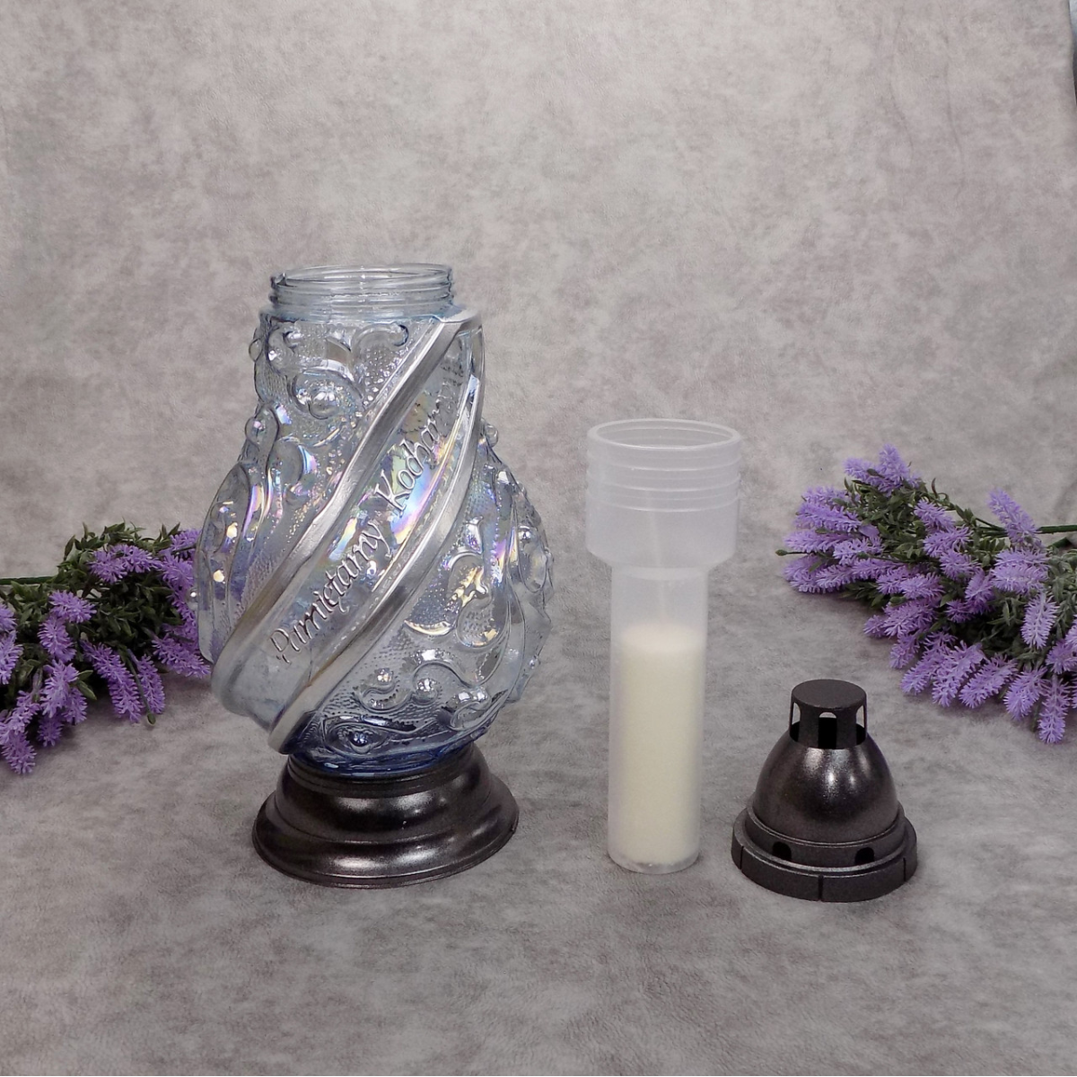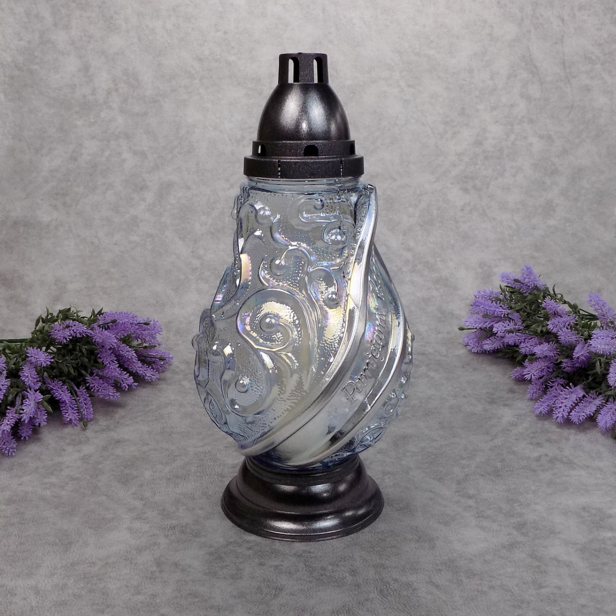 Лампадка зі свічкою-запаскою - виготовлена з високоякісних матеріалів, не містить токсичних речовин, не коптить і абсолютно безпечна для здоров“я. Матеріал: скло/пластик Час горіння свічки: ≈ 64 год Пакування: 4 шт Висота: 40 см Ширина: 20 см Глибина: 20 см Вага: 1 кг Призначено для використання: цвинтар, пам“ятні заходи та меморіали тільки зовнішнє використання простота у використанні, можливість зміни свічки без зміни лампадки може використовуватися як зі свічками, так і з лампами LED стійка основа забезпечує розміщення на різних поверхнях і мінімізує можливість перекидання