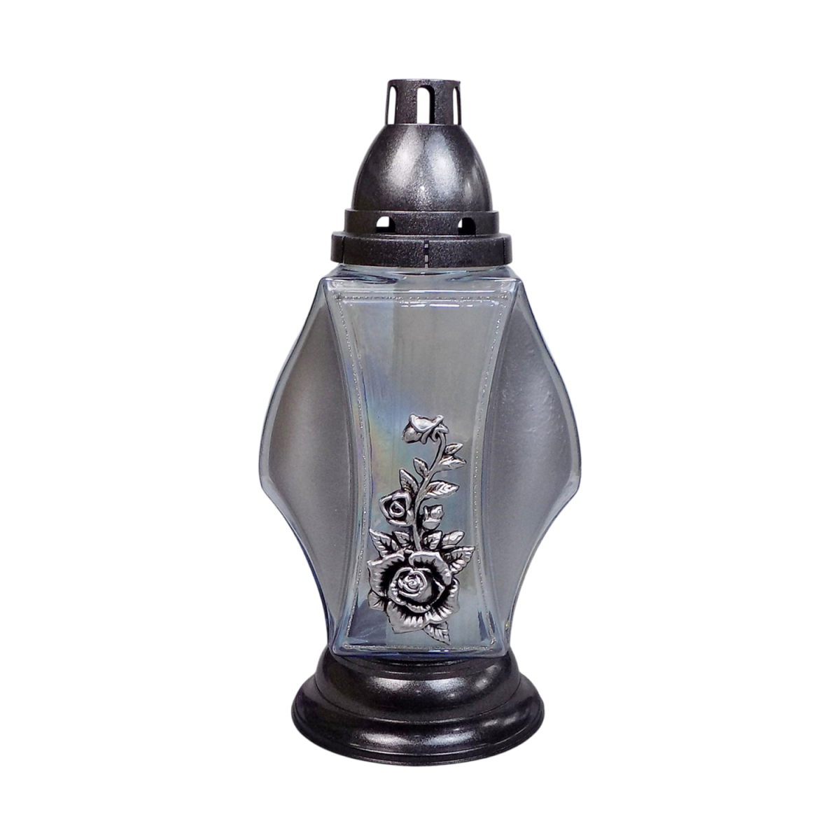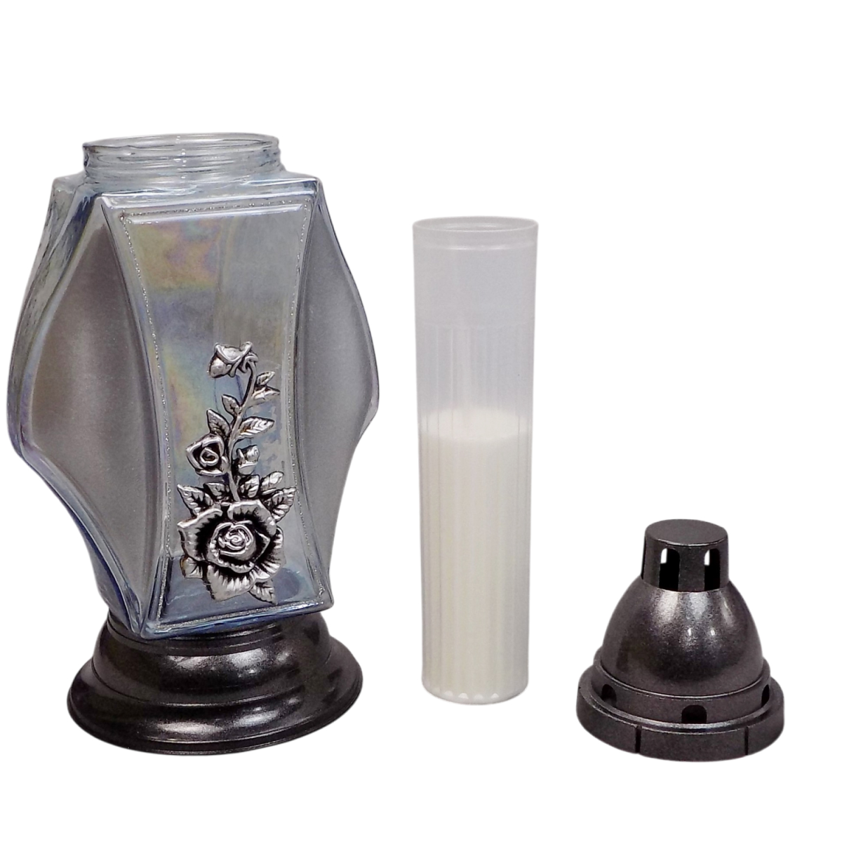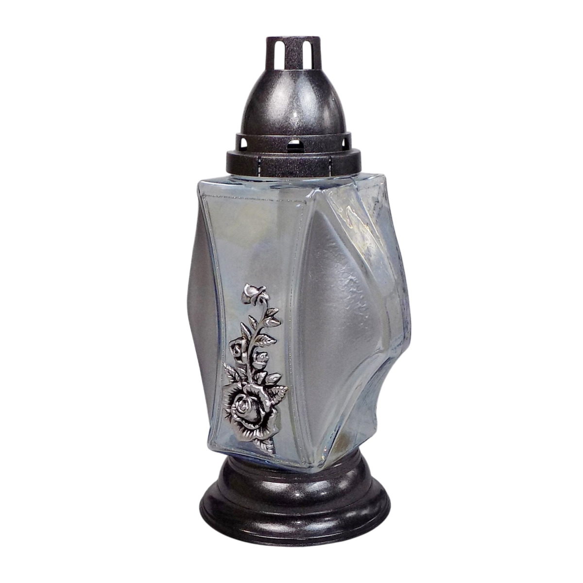 Вишукана лампадка з декоративним квітковим елементом — це гармонійне поєднання стриманого дизайну та символічної краси. Її елегантна форма та ніжний перламутровий відтінок скла створюють особливу атмосферу спокою, світлої пам’яті та поваги.