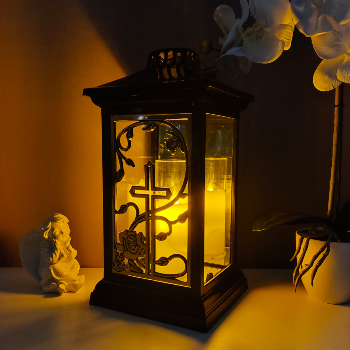 Лампадка капличка велика чорно-золота Lampion-L26 34см