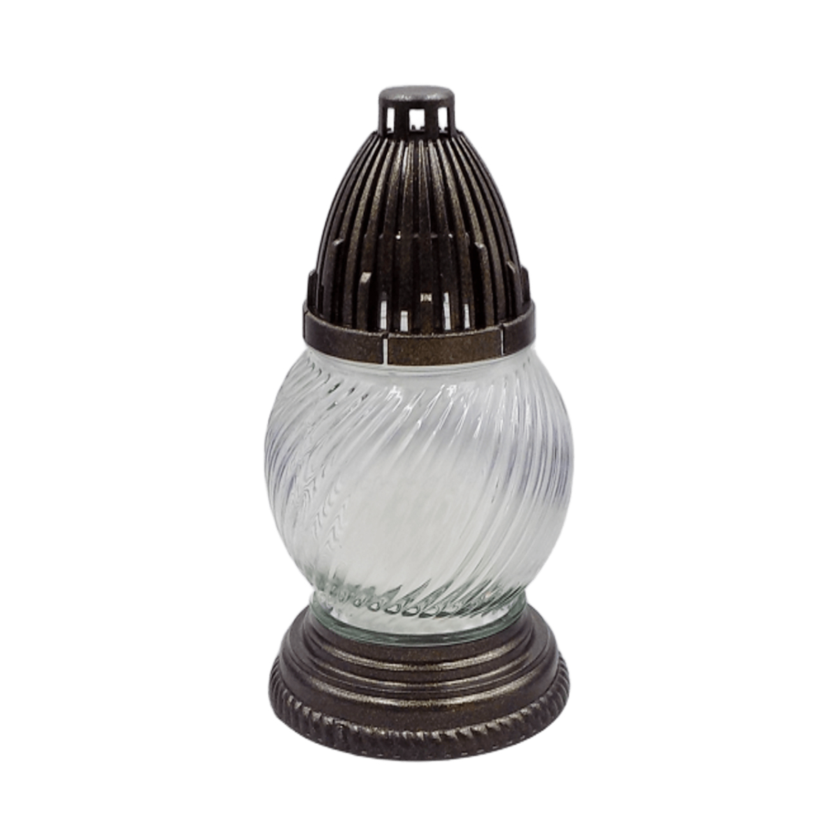 Стильна лампадка з класичним дизайном стане гарним вибором для щоденного використання. Скляна колба з легким рельєфом красиво розсіює світло, створюючи м’яке та спокійне світіння.