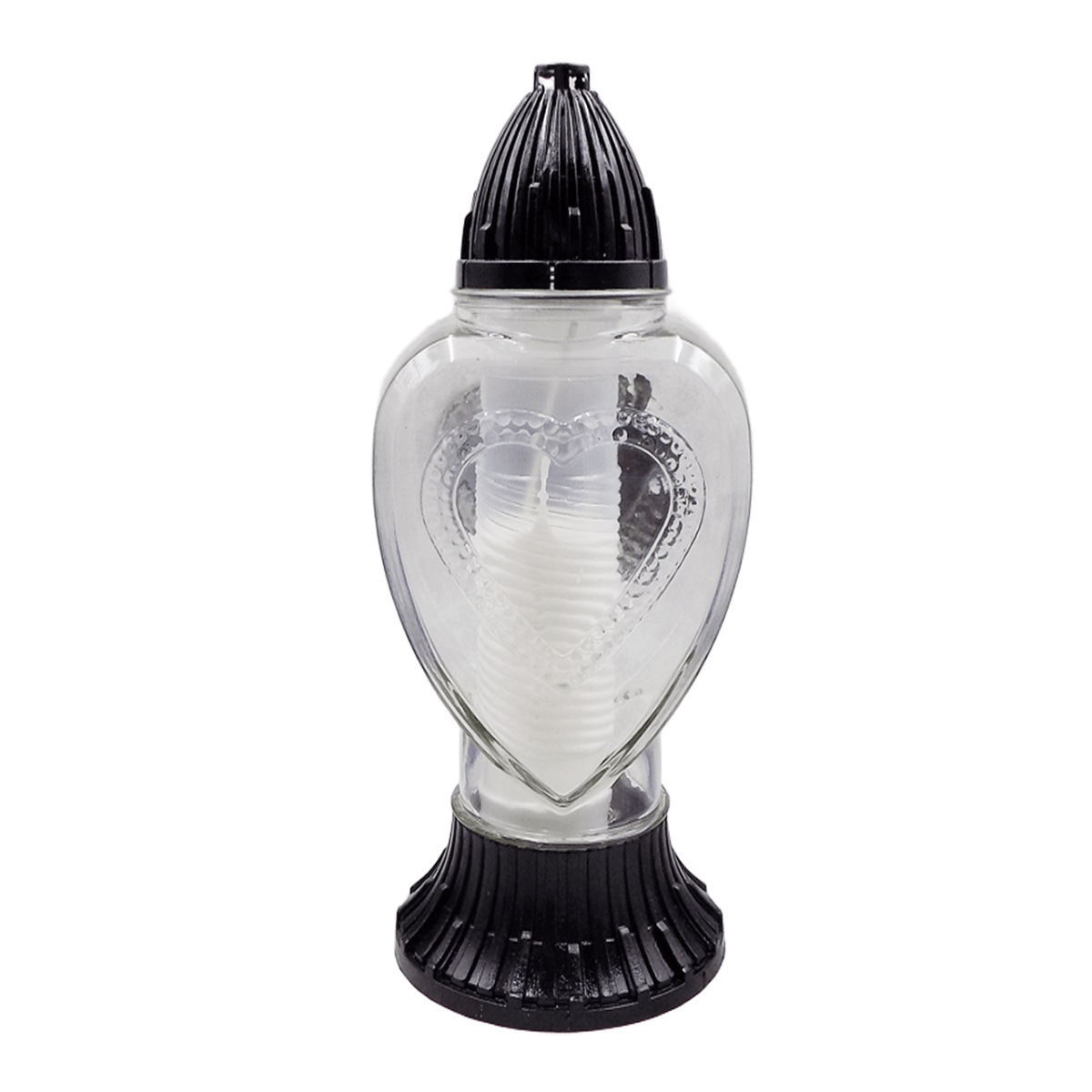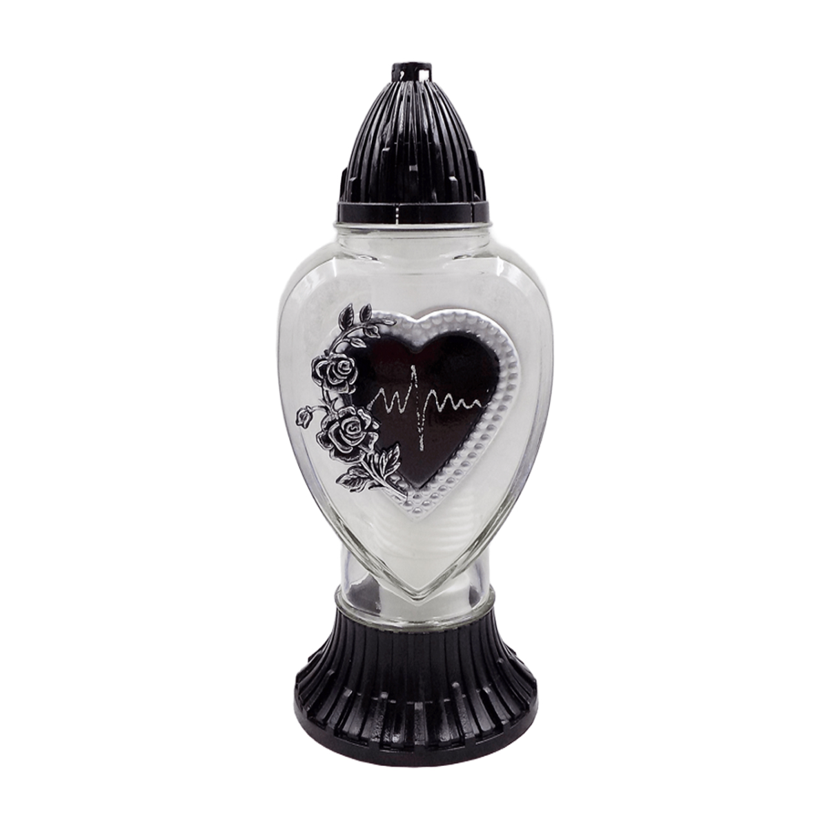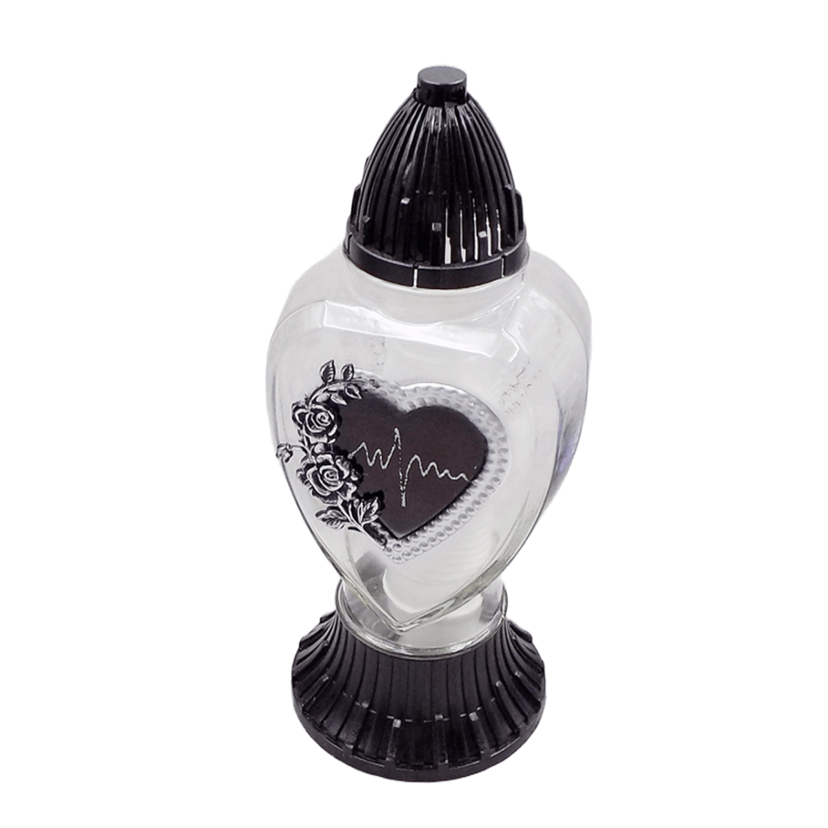 Витончена лампадка з декоративним елементом у вигляді серця символізує світлу пам’ять, любов і повагу. Акуратний рельєфний дизайн із ніжними деталями створює особливу атмосферу спокою та тепла.
