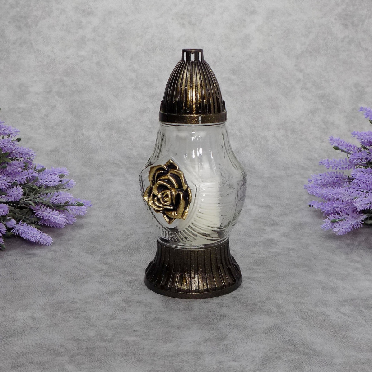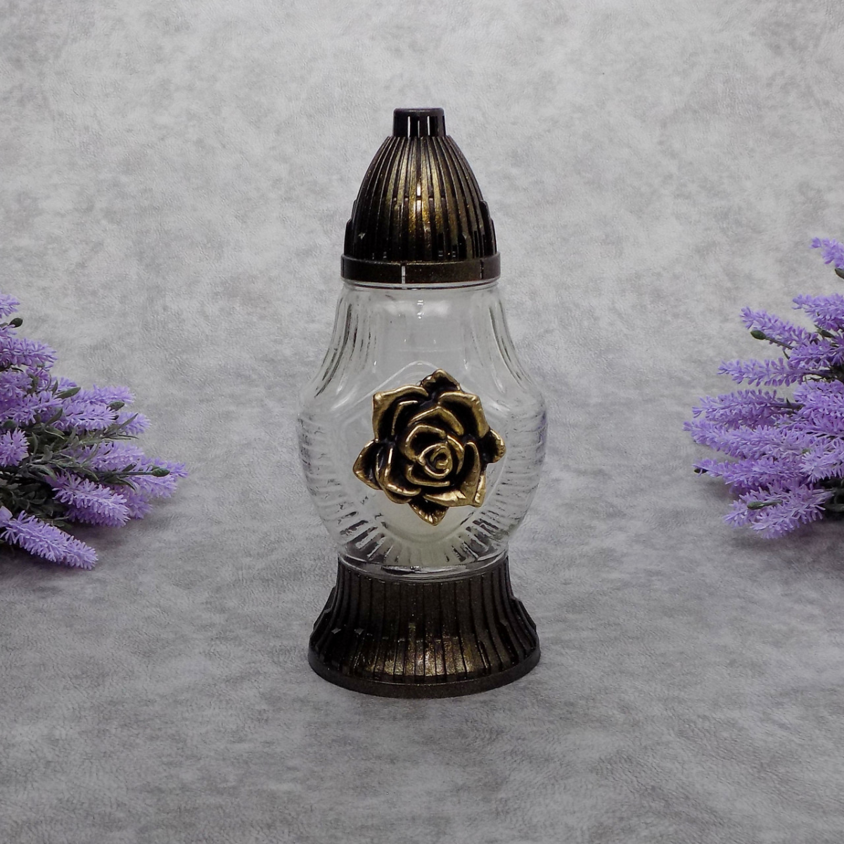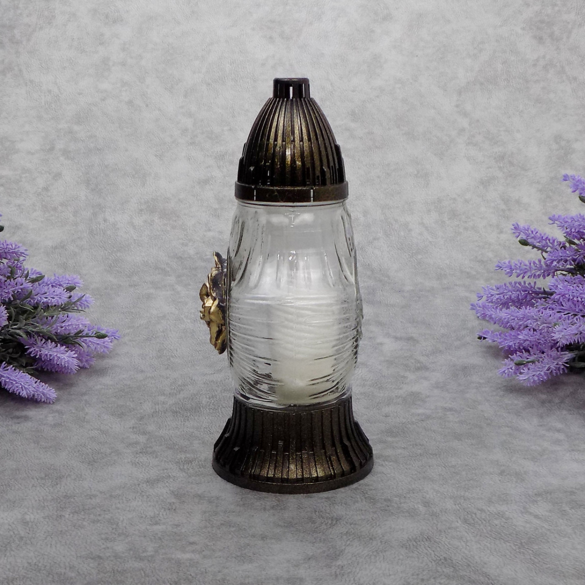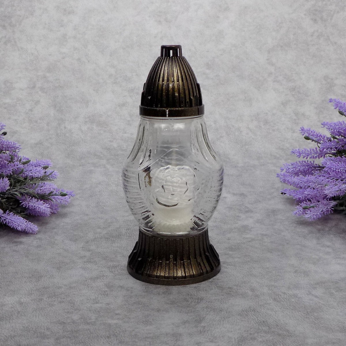 Лампадка зі свічкою-запаскою - виготовлена з високоякісних матеріалів, не містить токсичних речовин, не коптить і абсолютно безпечна для здоров“я. Матеріал: скло/пластик Час горіння свічки: ≈ 20 год Пакування: 6 шт Висота: 26 см Ширина: 13 см Глибина: 13 см Вага: 0,6 кг Призначено для використання: цвинтар, пам“ятні заходи та меморіали тільки зовнішнє використання простота у використанні, можливість зміни свічки без зміни лампадки може використовуватися як зі свічками, так і з лампами LED стійка основа забезпечує розміщення на різних поверхнях і мінімізує можливість перекидання