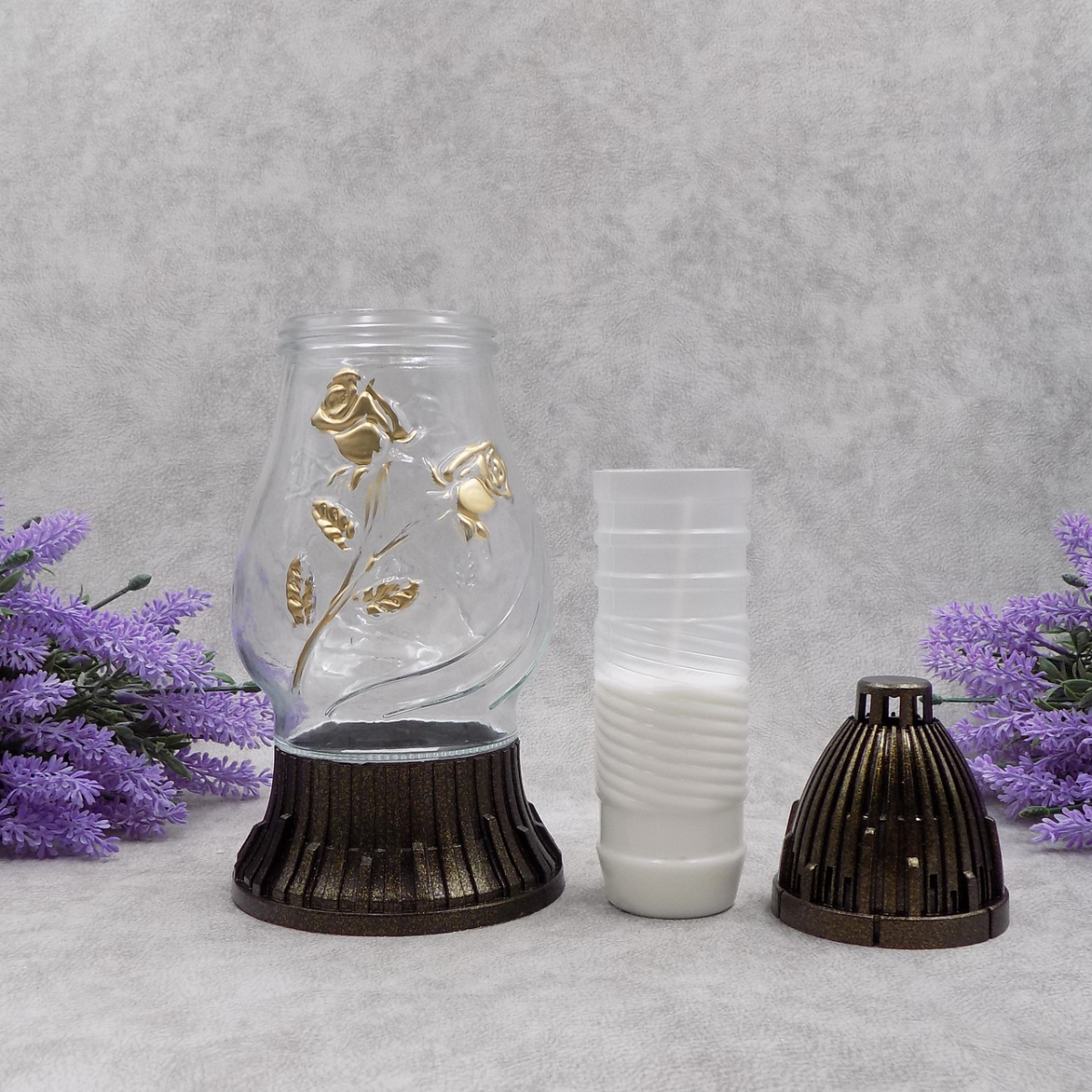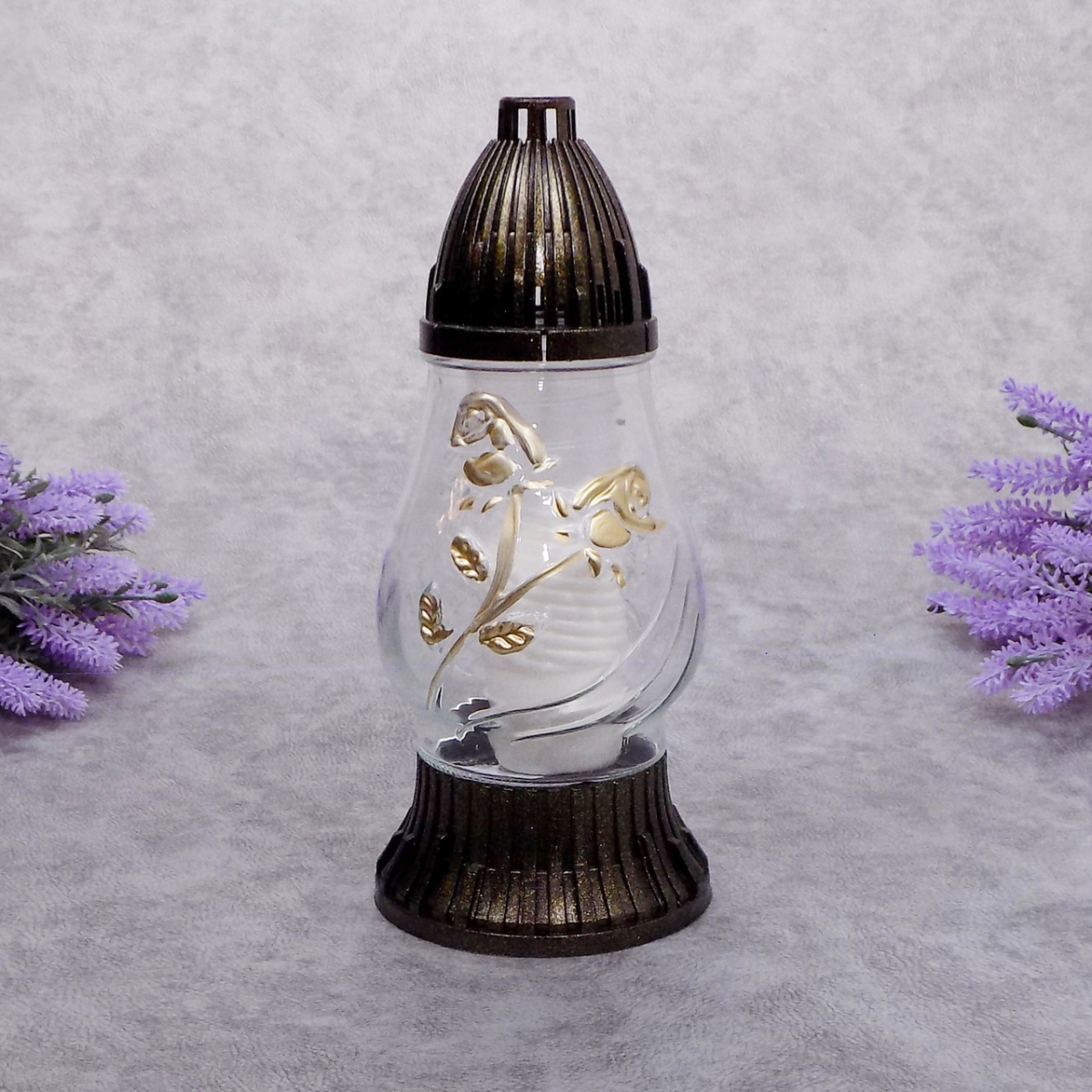 Лампадка скляна з квітковим орнаментом LP200 прозора Gold