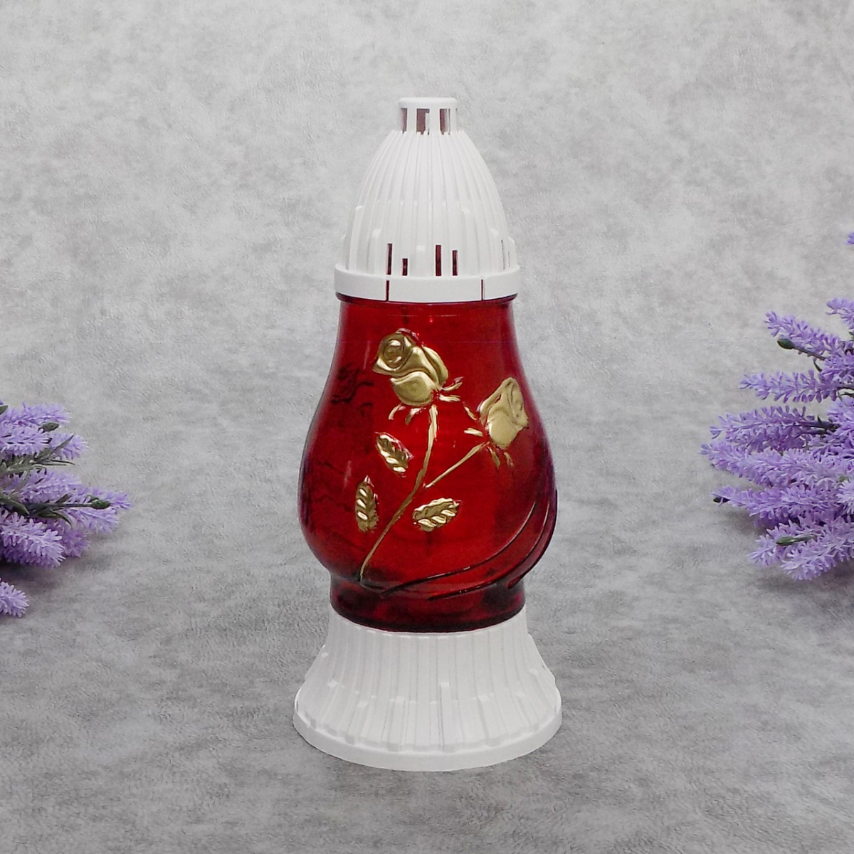 Лампадка скляна з квітковим орнаментом LP200 червоно-біла
