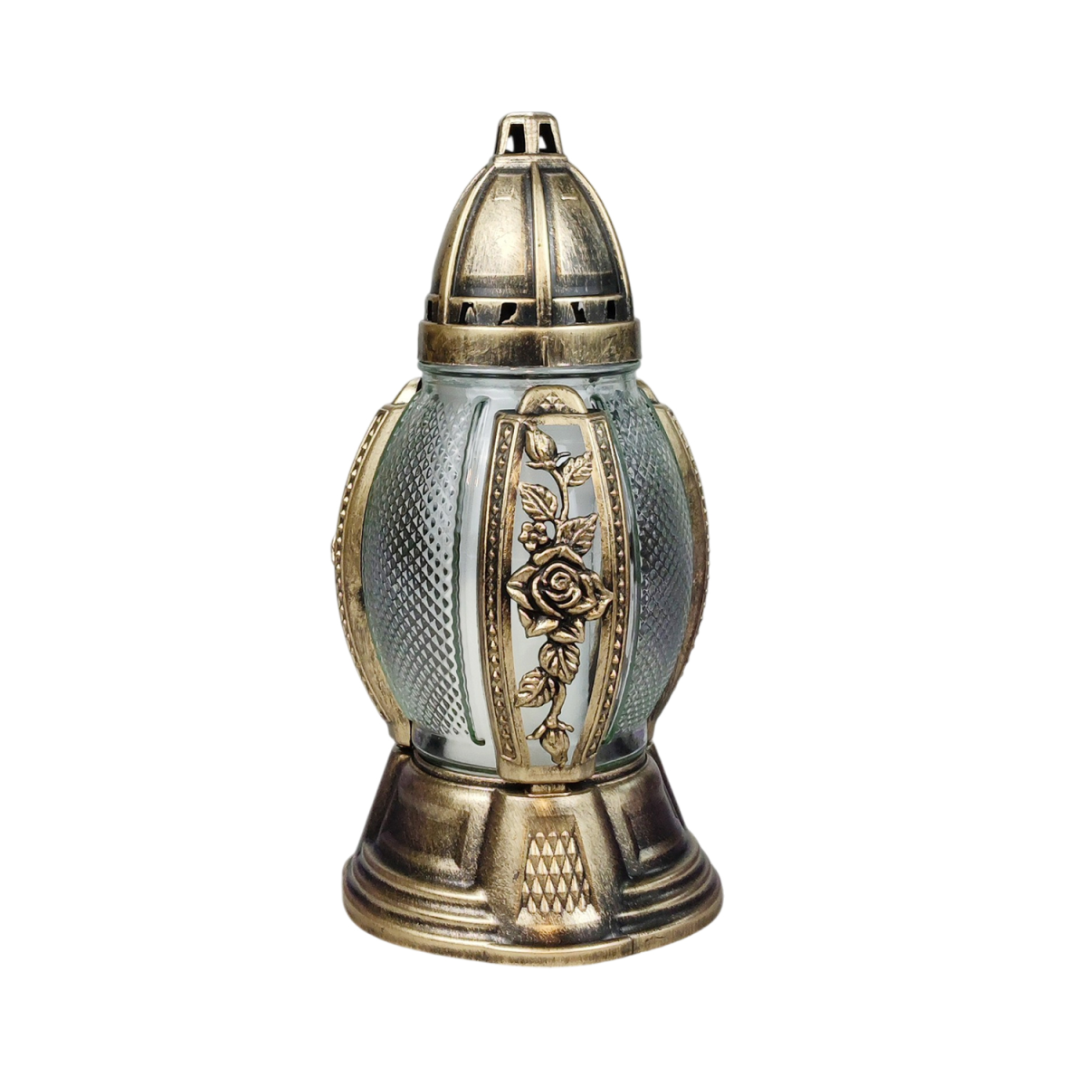Лампадка скляна середня в ажурному оздобленні бронзова 456P