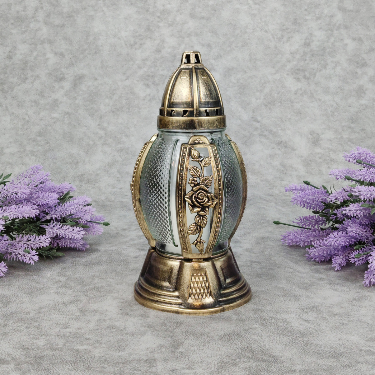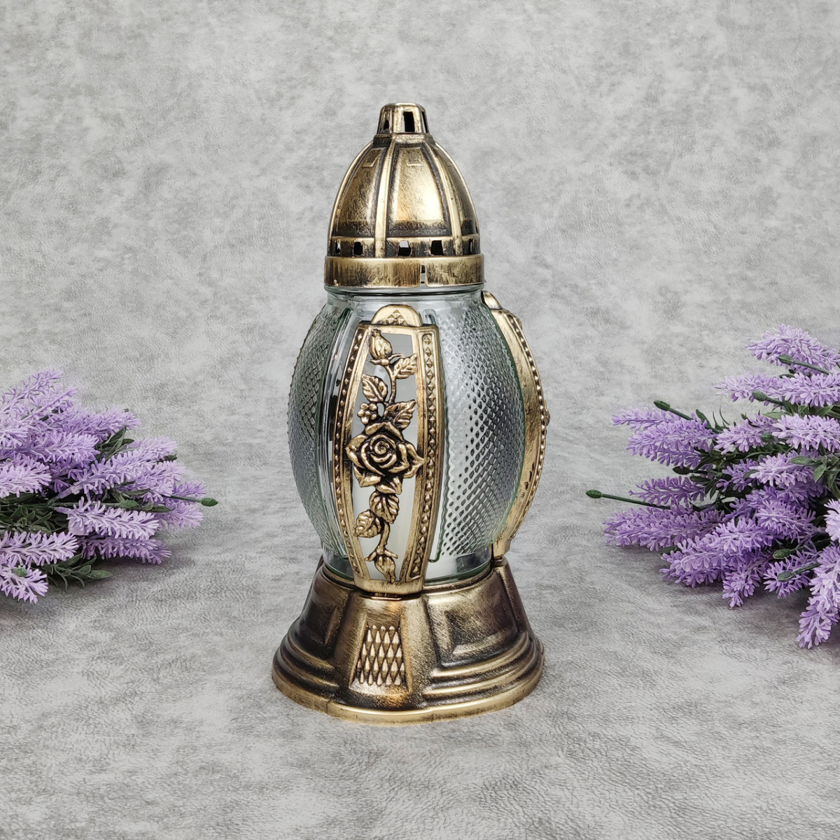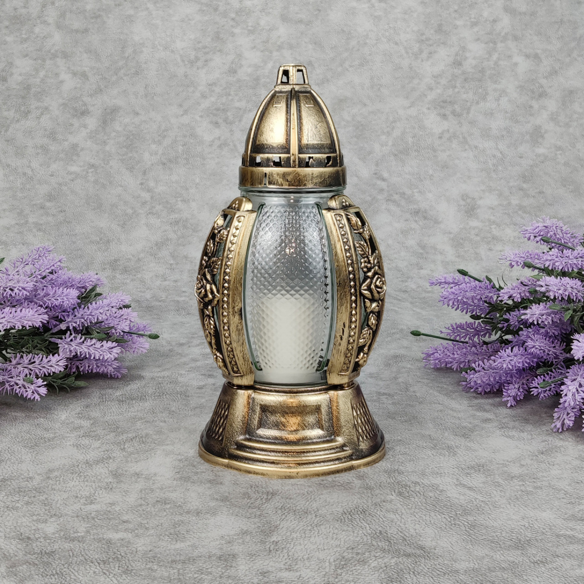 Лампадка - стриманий і символічний виріб, який запалюють на могилах померлих у пам’ять про померлих під час поминальних днів або особливих дат, що символізує незгасаючу пам’ять і молитовну підтримку душ. У християнстві лампадка є частиною як православних, так і католицьких традицій. Це простий, але виразний символ вічної шани до померлих, що втілює духовність і спокій. Матеріал: скло/пластик Час горіння свічки: 33 год Пакування: 6 шт Висота: 27 см Ширина: 13 см Глибина: 13 см Вага: 0,5 кг Призначено для використання: цвинтар, пам“ятні заходи та меморіали тільки зовнішнє використання простота у використанні, можливість зміни свічки без зміни лампадки може використовуватися як зі свічками, так і з лампами LED стійка основа забезпечує розміщення на різних поверхнях і мінімізує можливість перекидання не містить токсичних речовин виготовлена з високоякісних матеріалів
