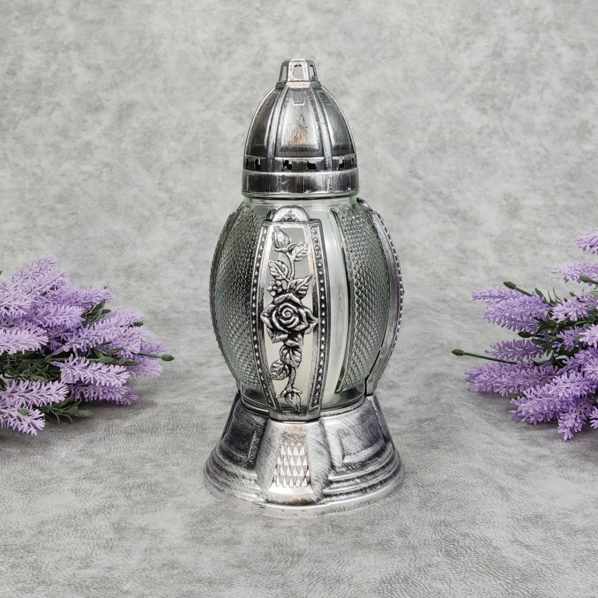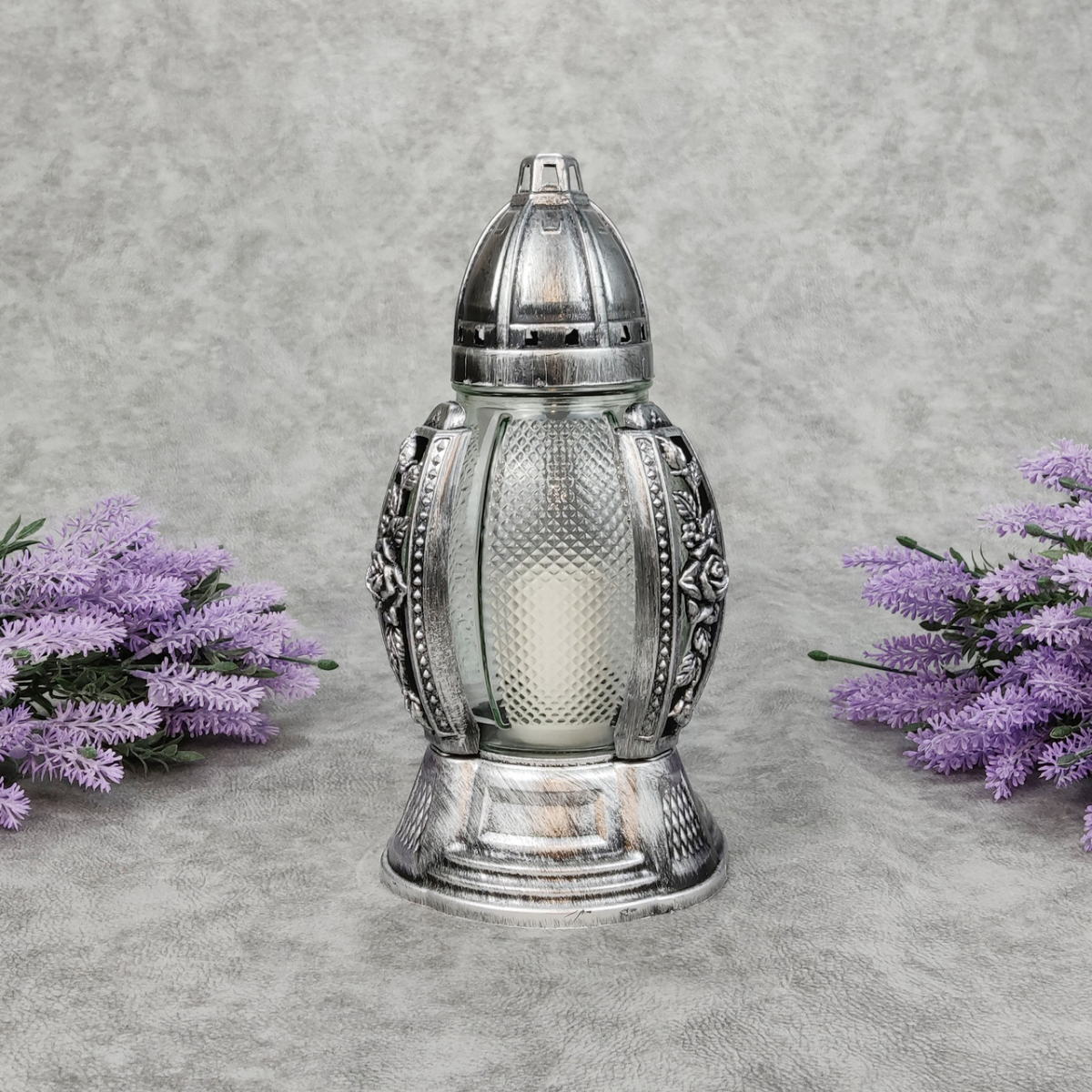 Лампадка скляна середня в ажурному оздобленні графіт 456P