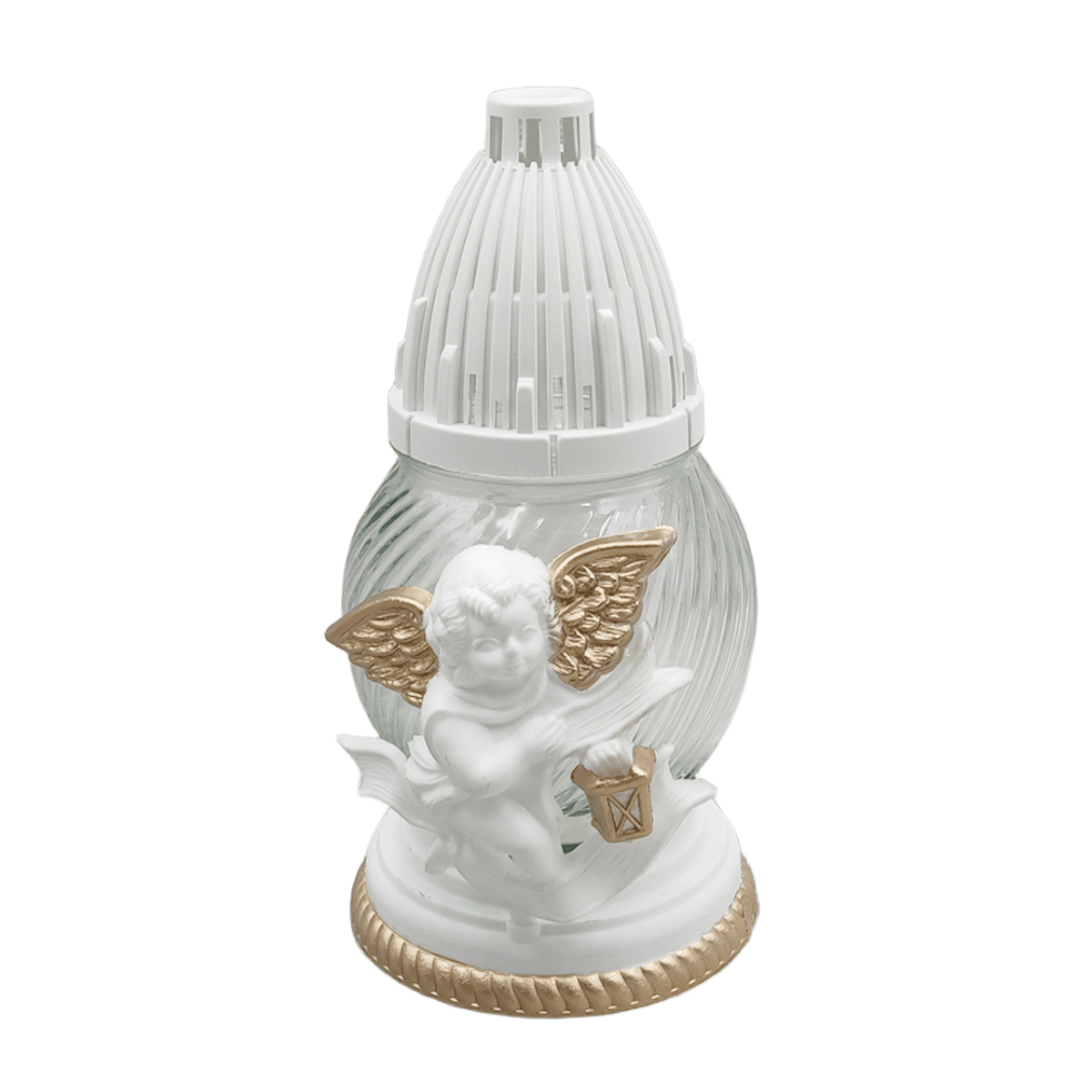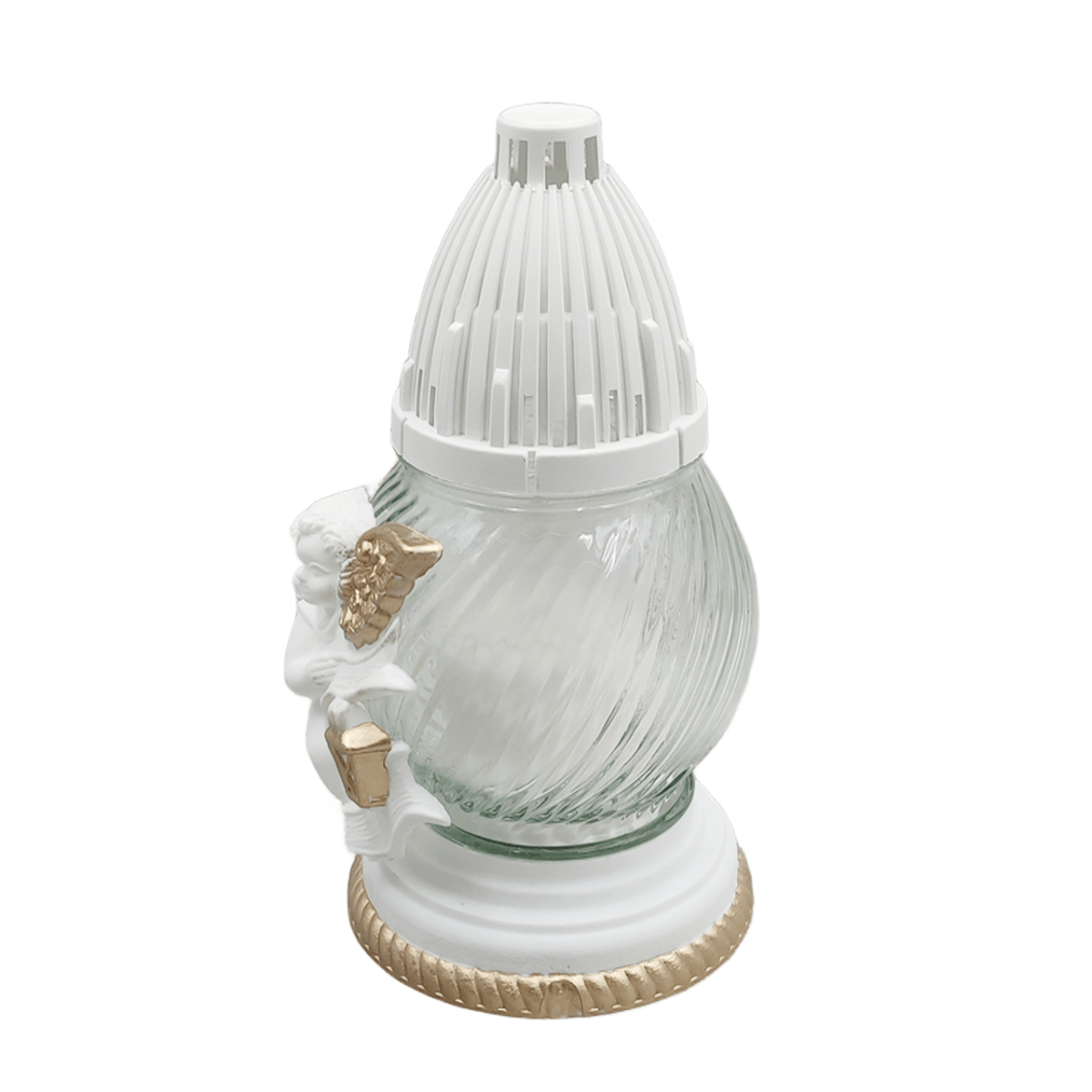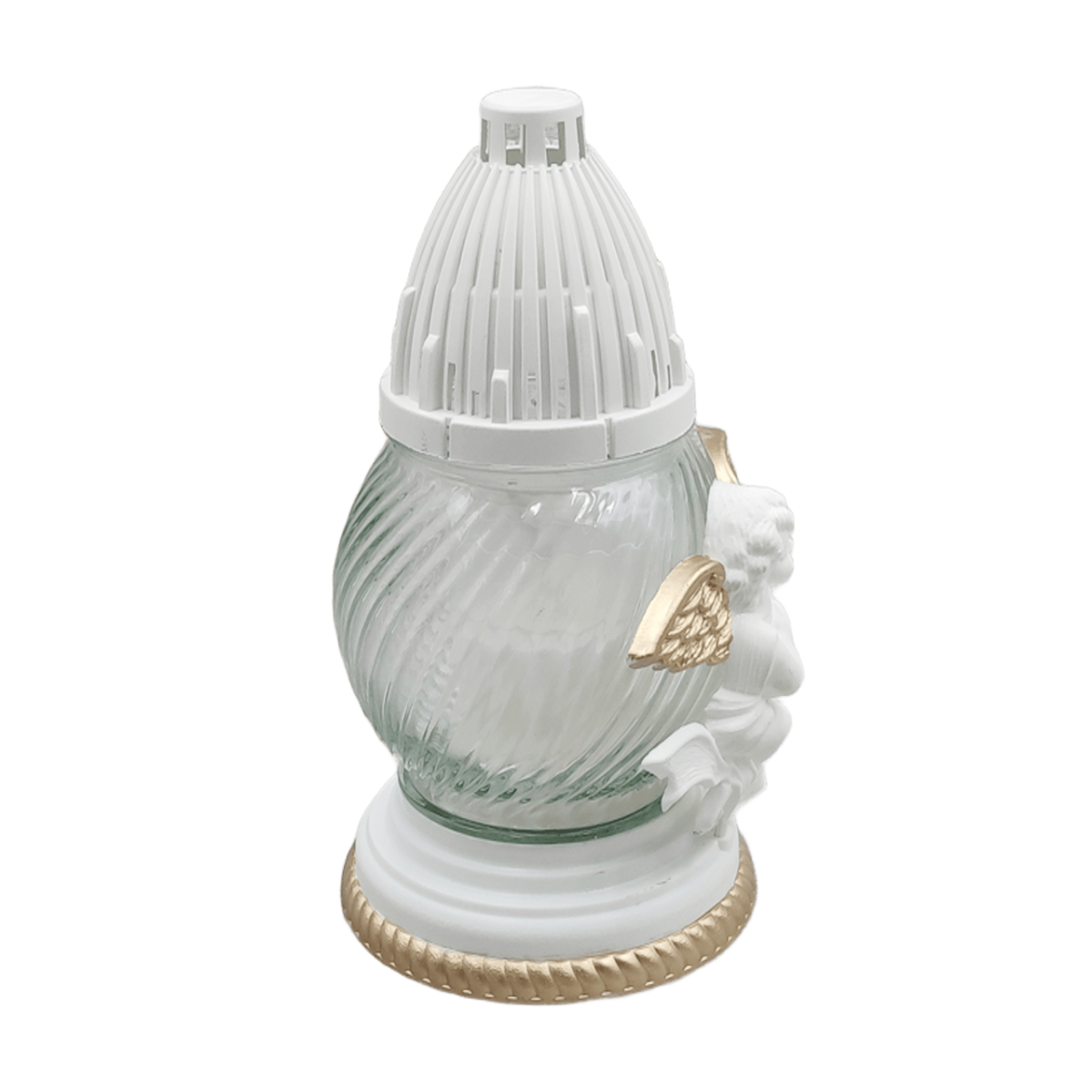 Лампадка скляна мала біла куля з Ангелом 02Apl 17год