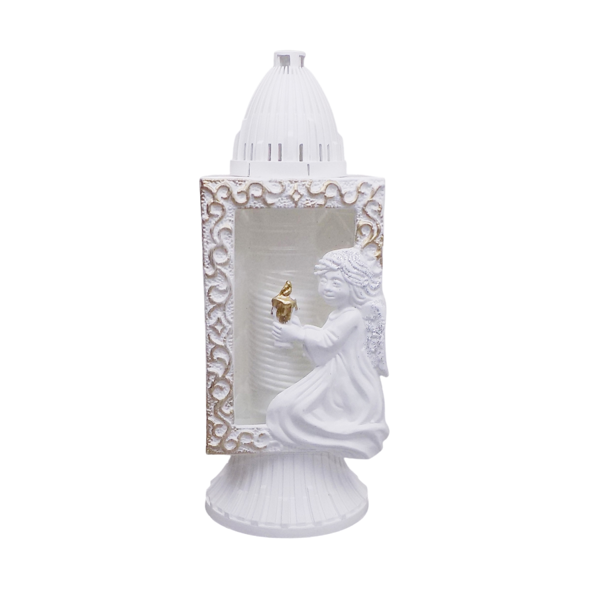 Лампадка капличка середня біла з ангелом Glass Art 33год