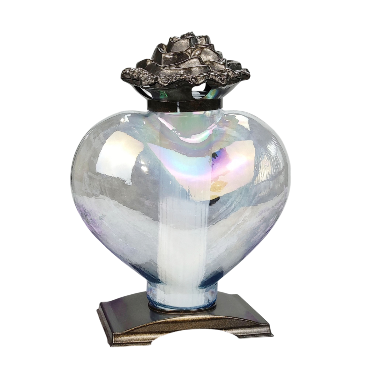 Лампадка скляна велика серце прозора з золотистою трояндою Serce Ornament 45год