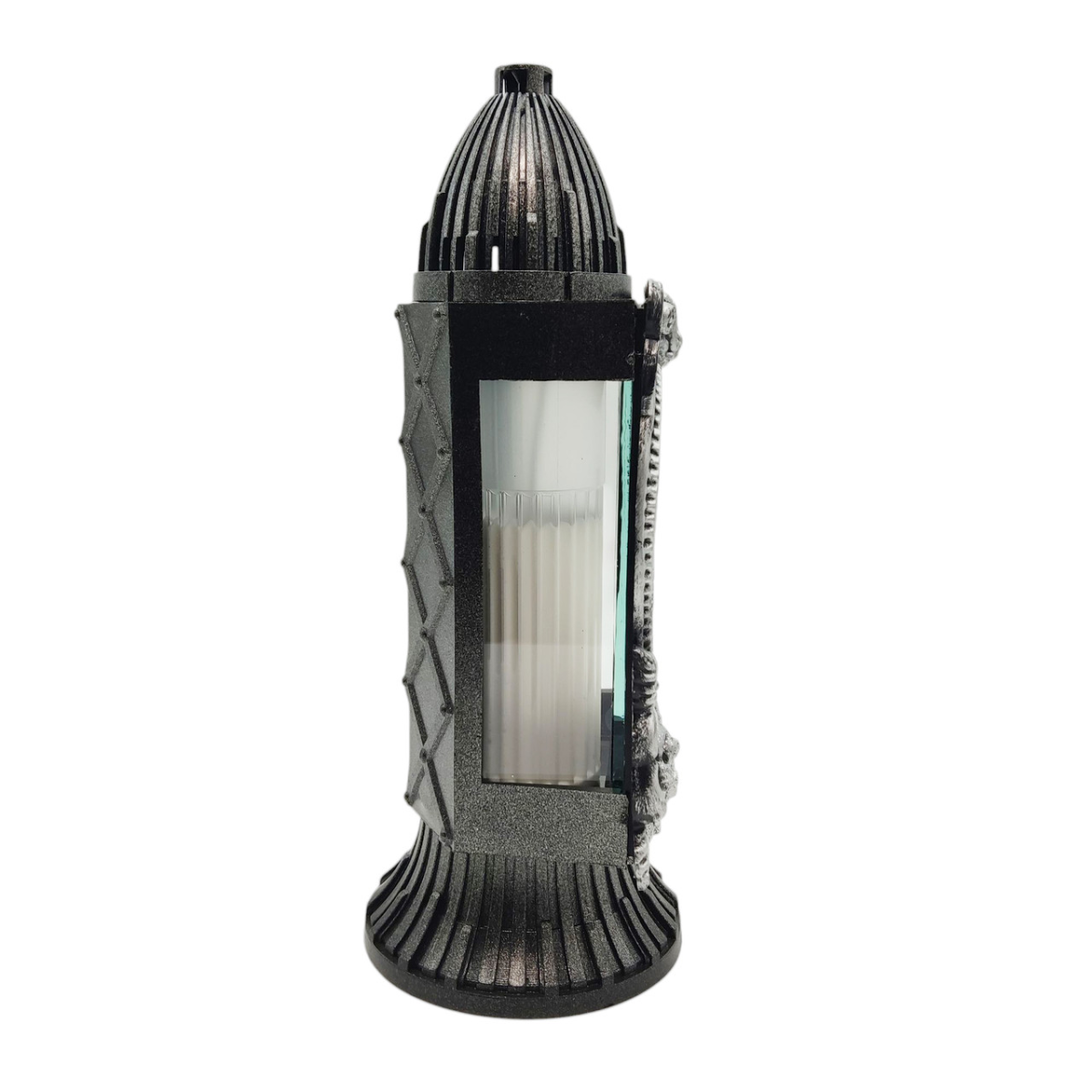 Лампадка зі свічкою-запаскою - виготовлена з високоякісних матеріалів, не містить токсичних речовин, не коптить і абсолютно безпечна для здоров“я. Матеріал: скло/пластик Час горіння свічки: ≈ 33 год Пакування: 5 шт Висота: 33 см Ширина: 15 см Глибина: 12 см Вага: 0,8 кг Призначено для використання: цвинтар, пам“ятні заходи та меморіали тільки зовнішнє використання простота у використанні, можливість зміни свічки без зміни лампадки може використовуватися як зі свічками, так і з лампами LED стійка основа забезпечує розміщення на різних поверхнях і мінімізує можливість перекидання