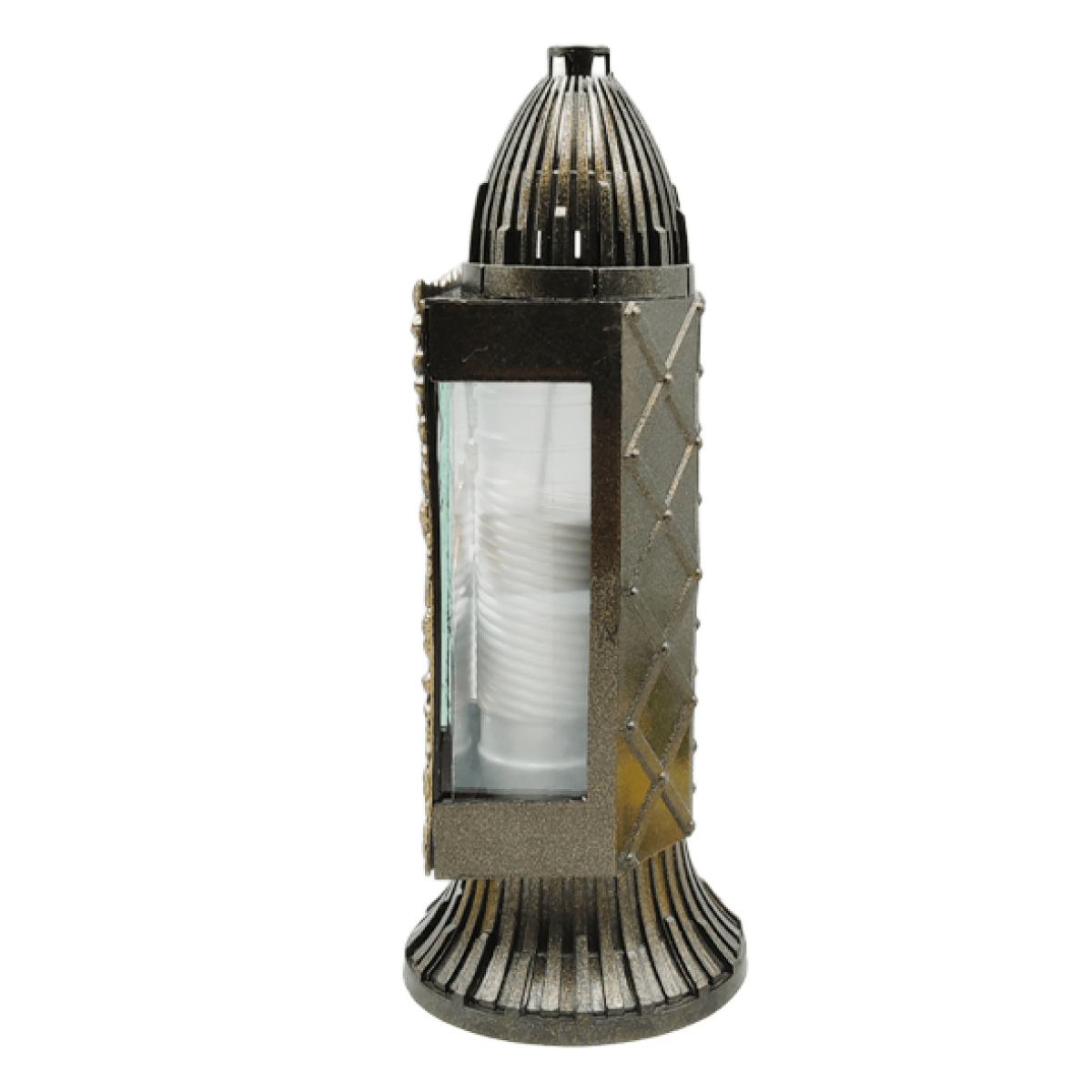 Міцна конструкція та стійка підставка забезпечують надійність і захищають свічку від вітру, що особливо важливо для використання на кладовищі.