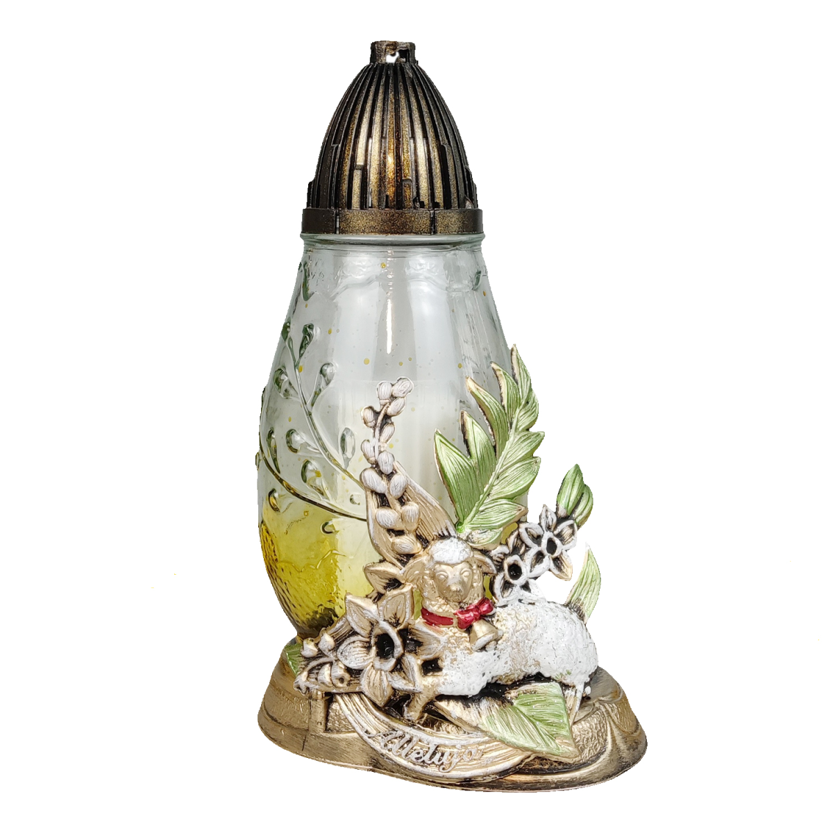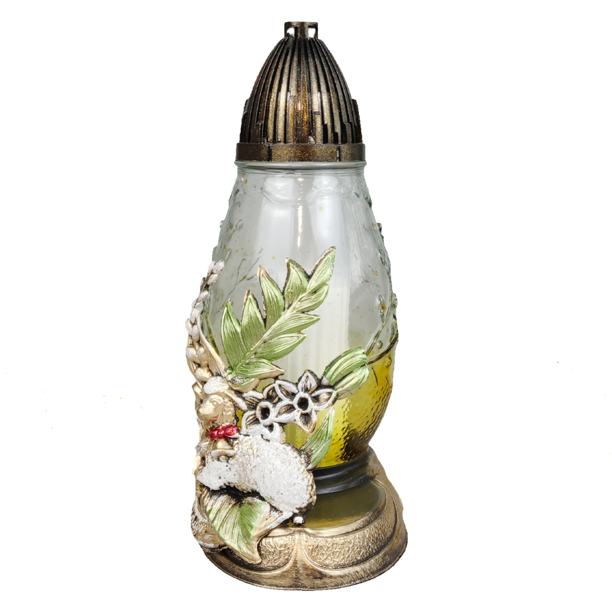 Лампадка скляна середня великодня з аплікацією ягня LPJ3Apl 20год