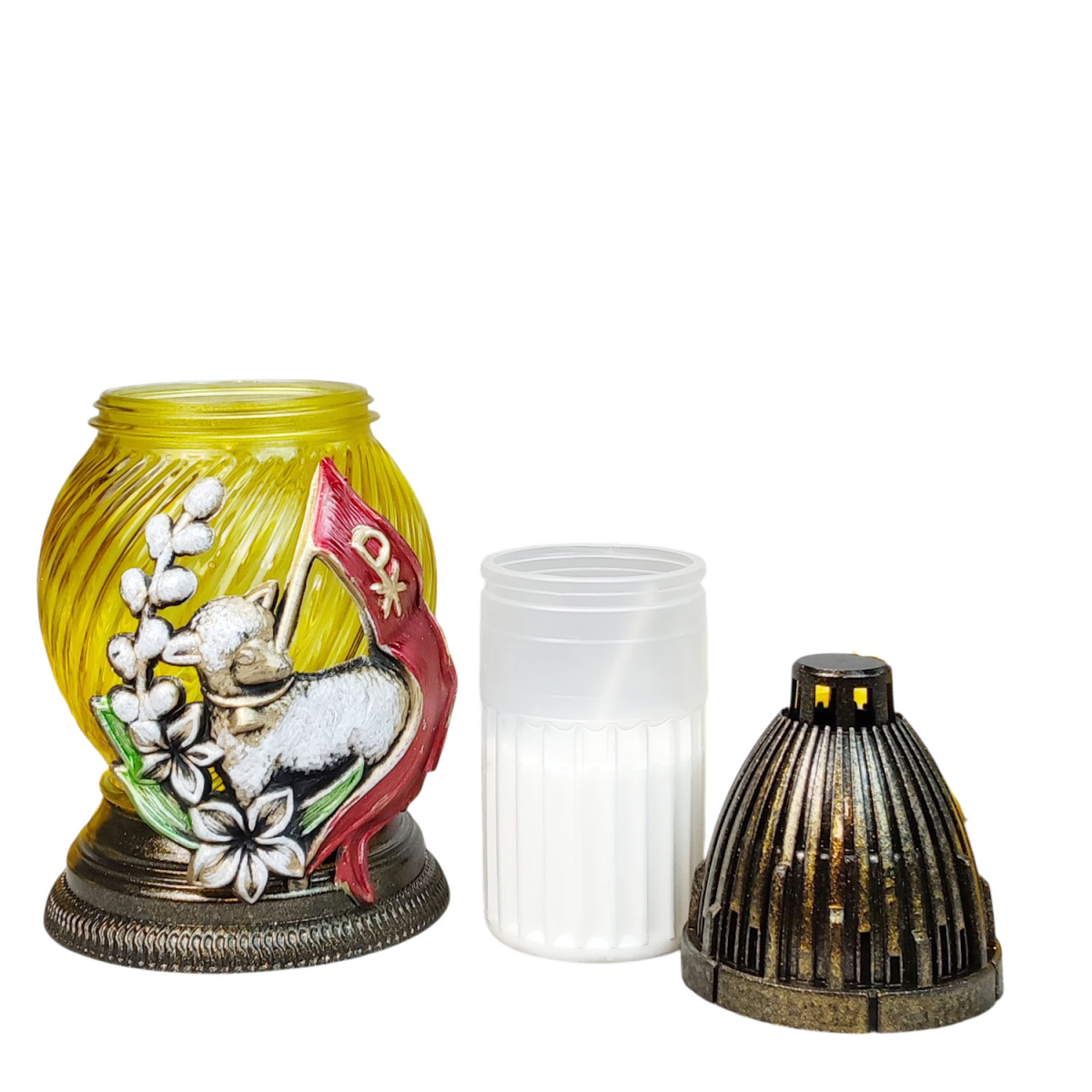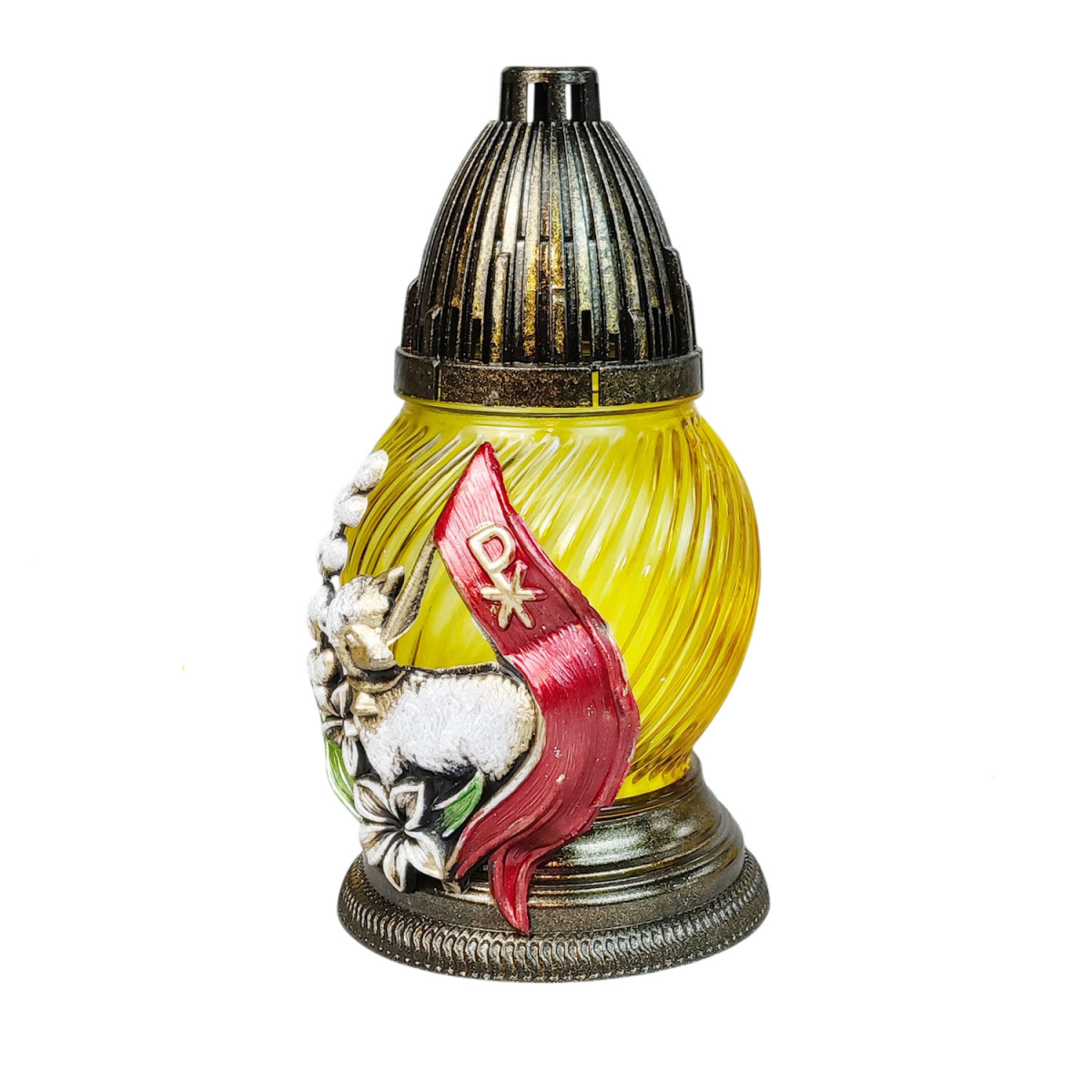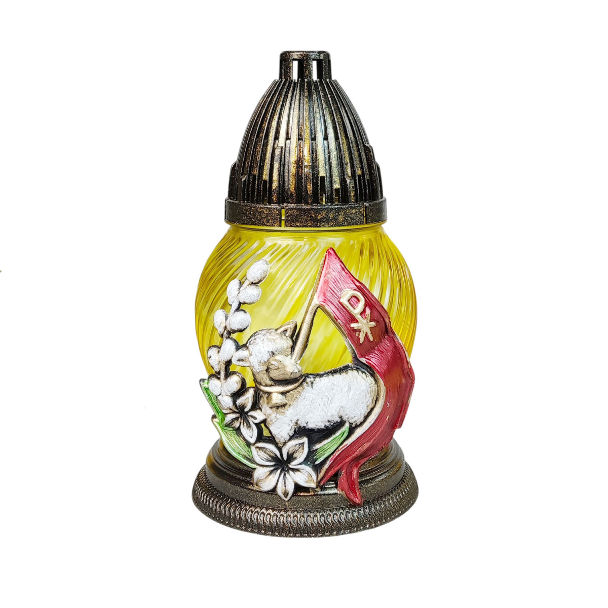 Лампадка скляна великодня аплікація з баранчиком LP02 Apl 17год