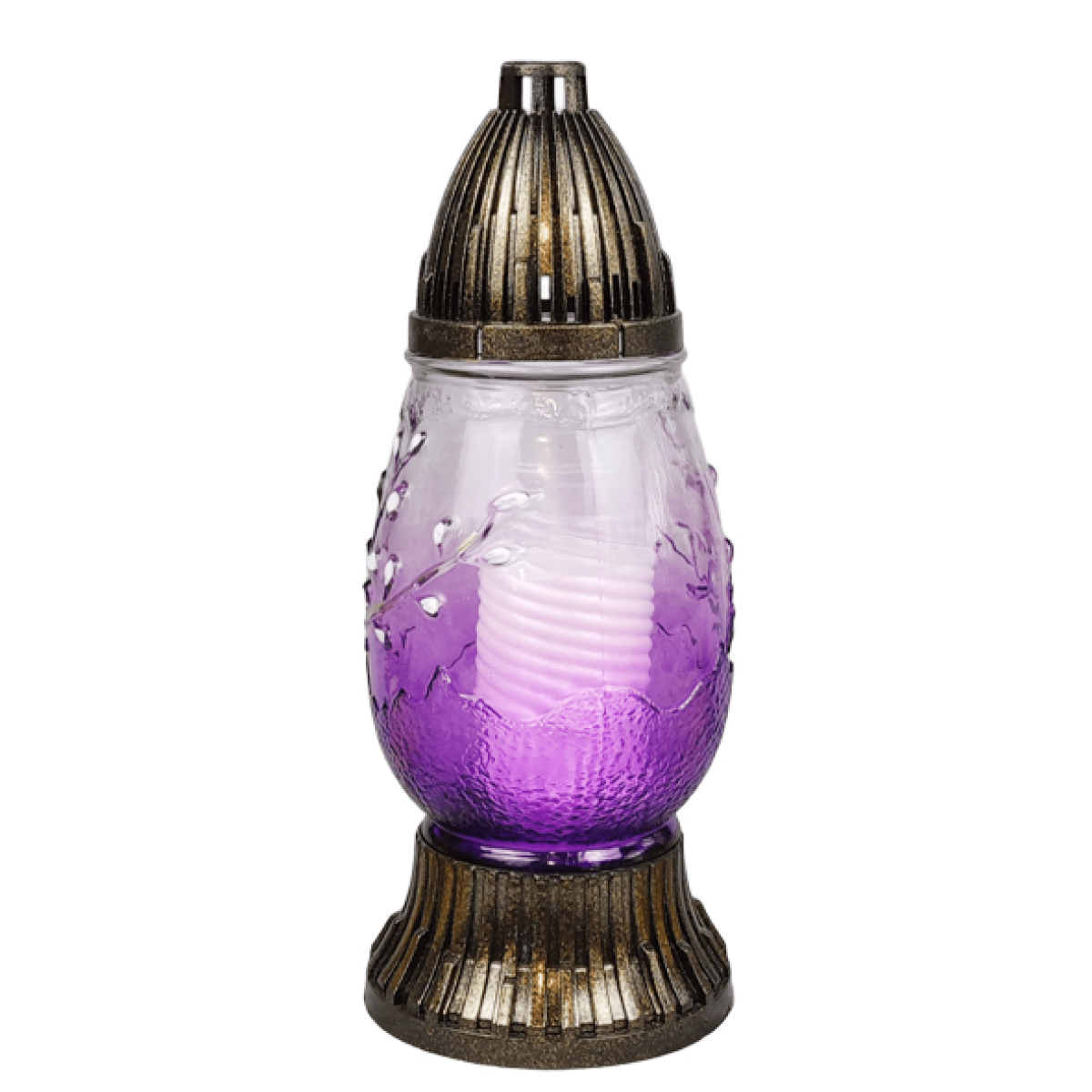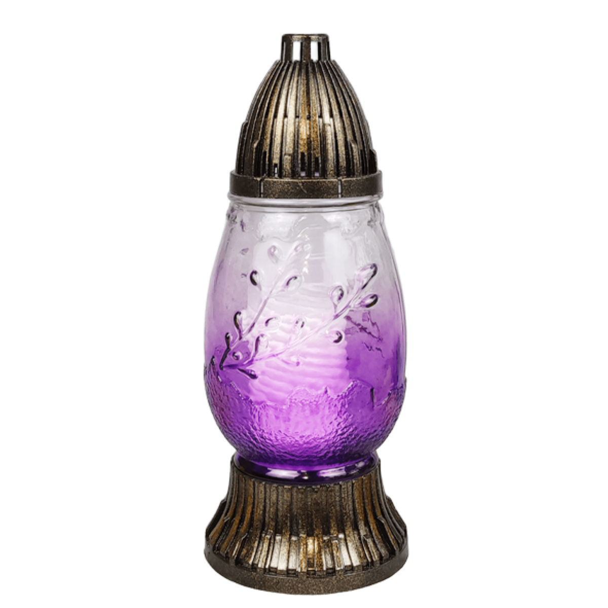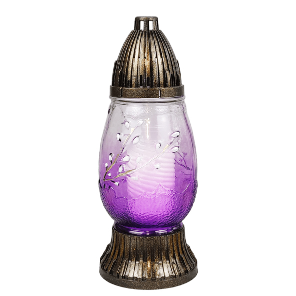 Декоративна ритуальна лампадка зі скляним корпусом — елегантний меморіальний виріб, призначений для вшанування пам’яті близьких. Лампадка має витончений дизайн із рельєфним орнаментом гілочок верби, що символізує весну, надію та духовне відродження. Завдяки кольоровому склу лампадка створює красиве та м’яке світіння свічки, яке додає місцю пам’яті особливої атмосфери спокою та світла.