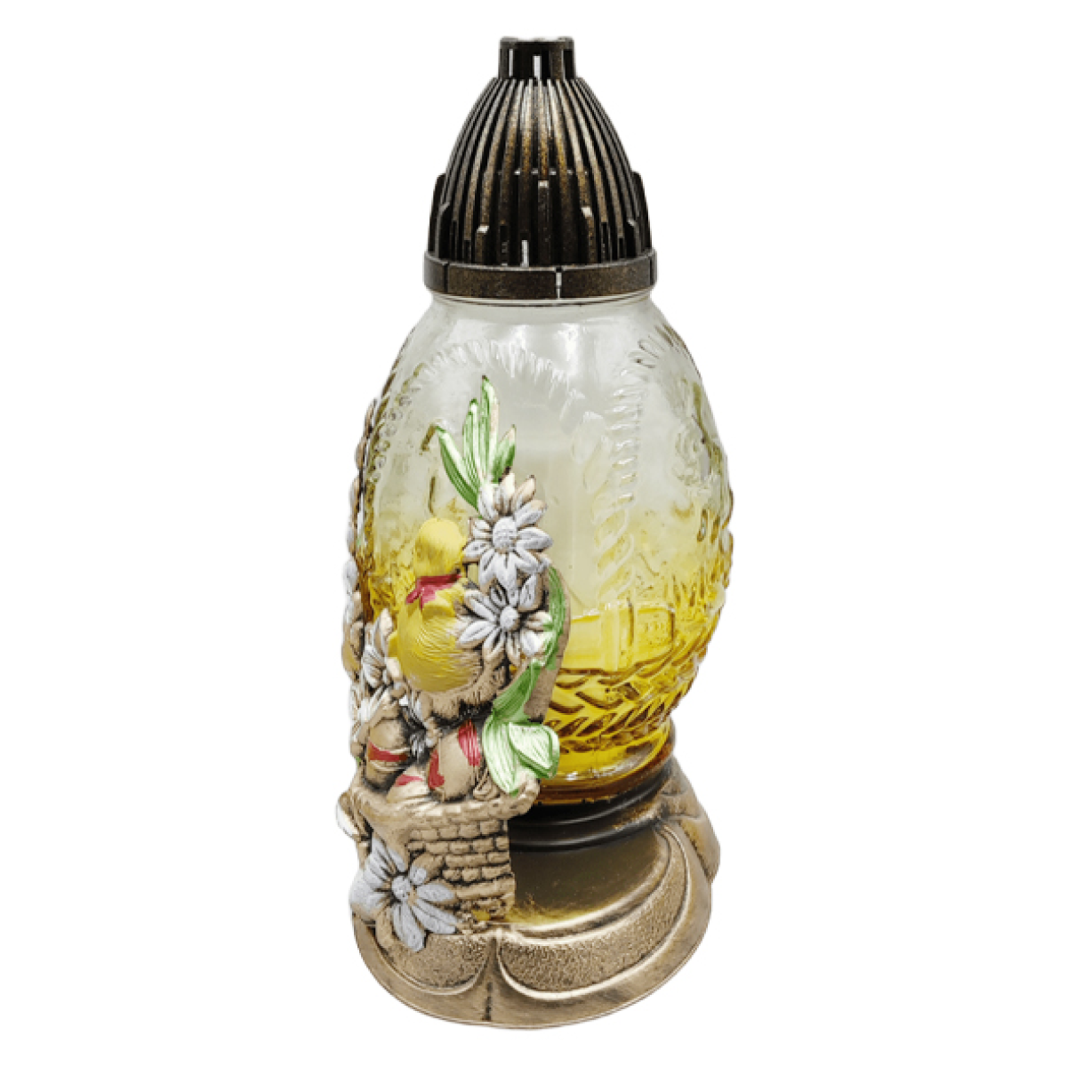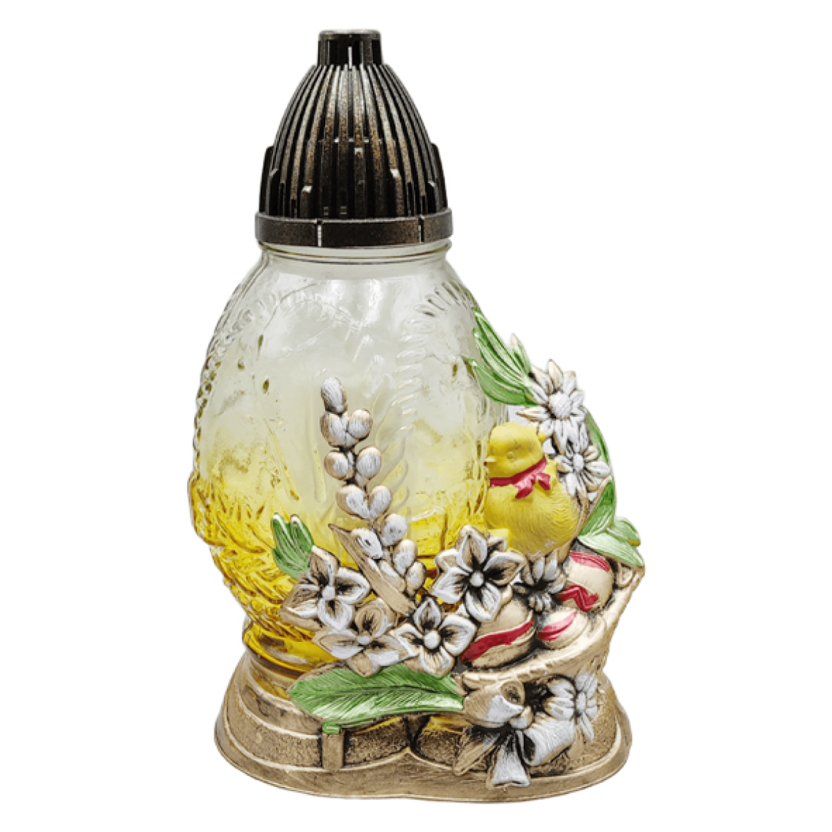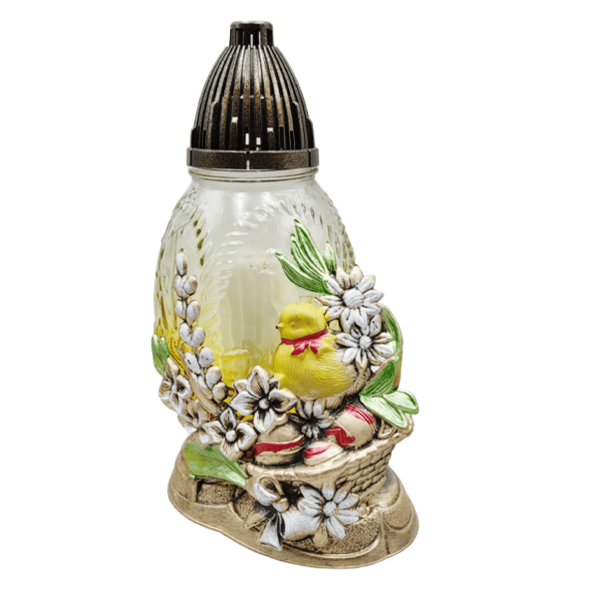 Лампадка стеклянная средняя пасхальная с аппликацией птенца LPJ3Apl 20год