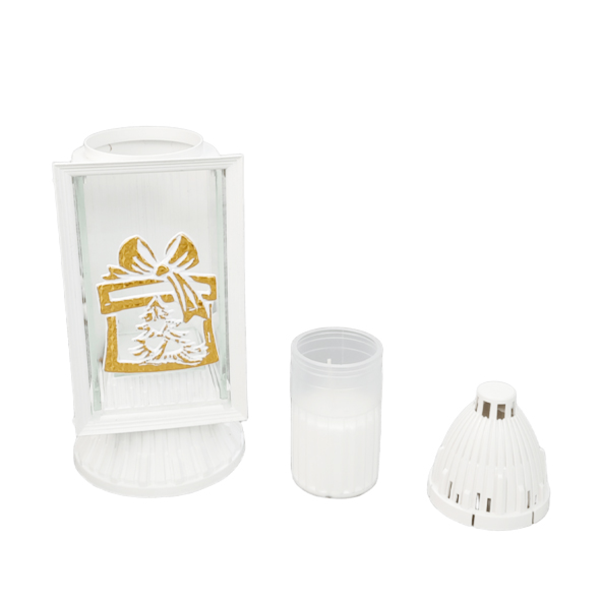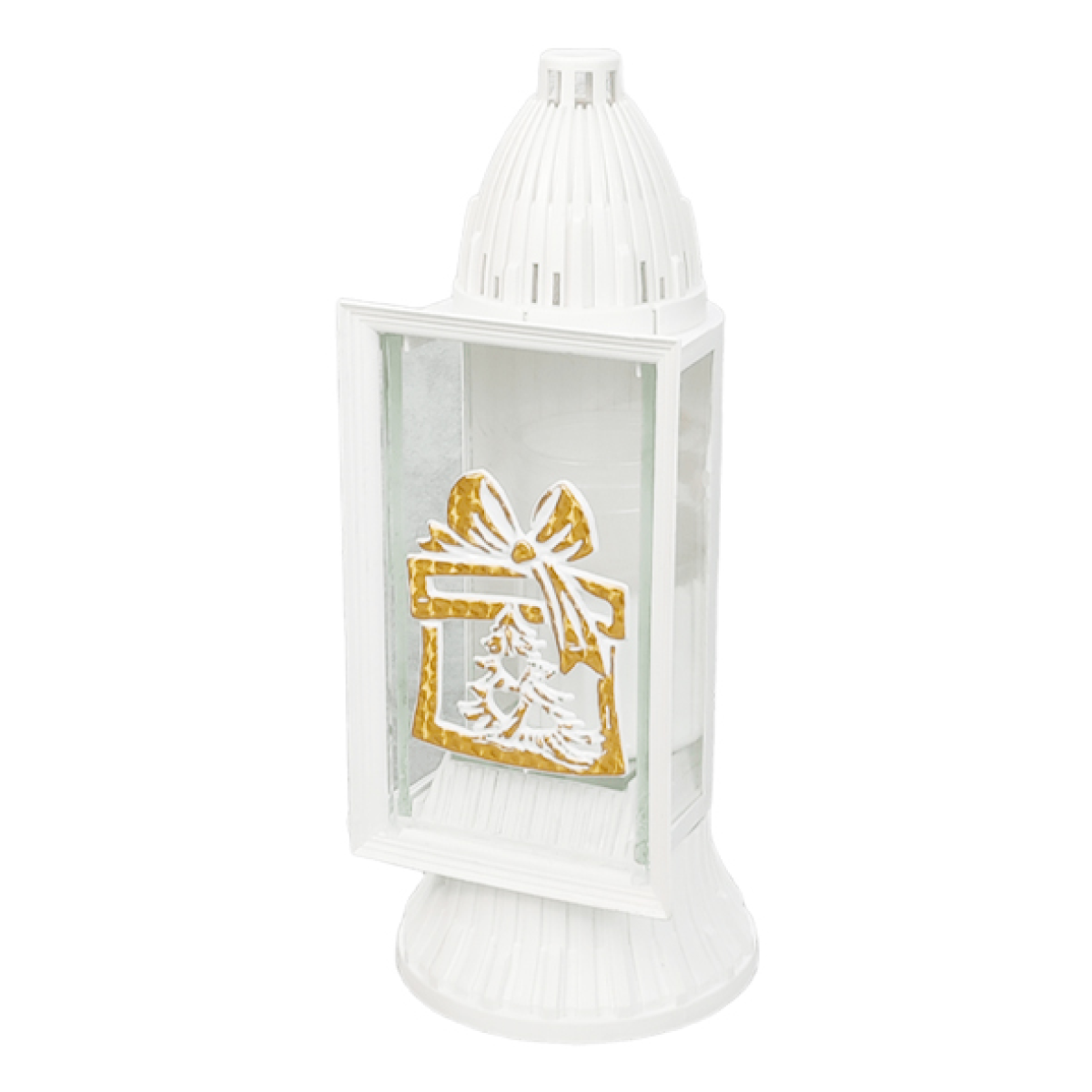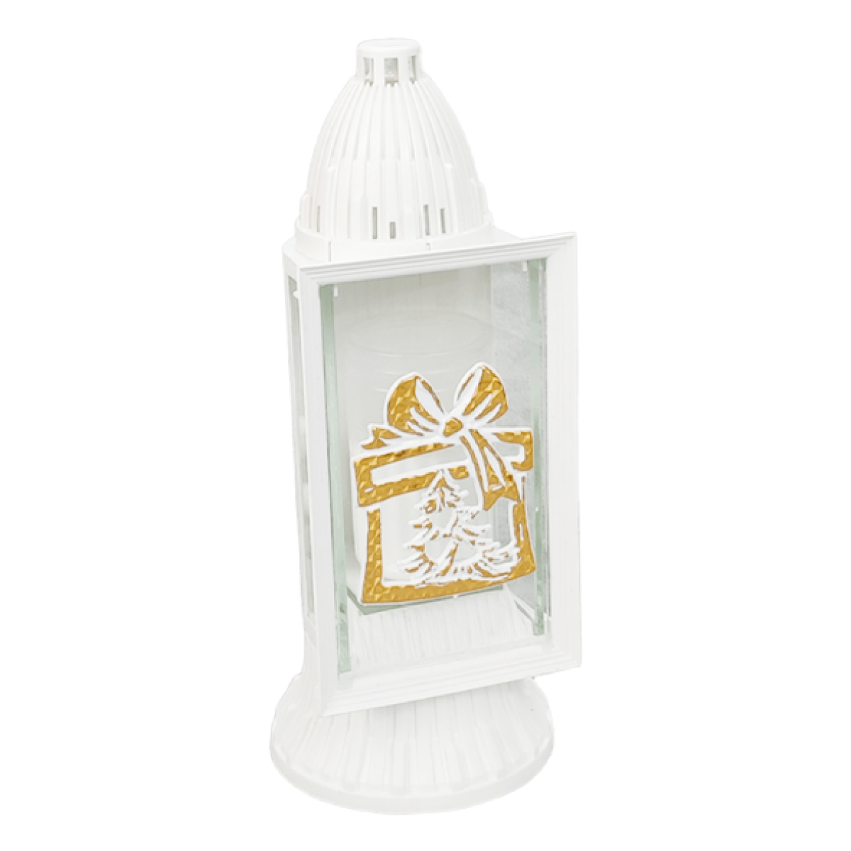 Лампадка середня біла з золотистою аплікацією Різдвяний Подарунок 28 см