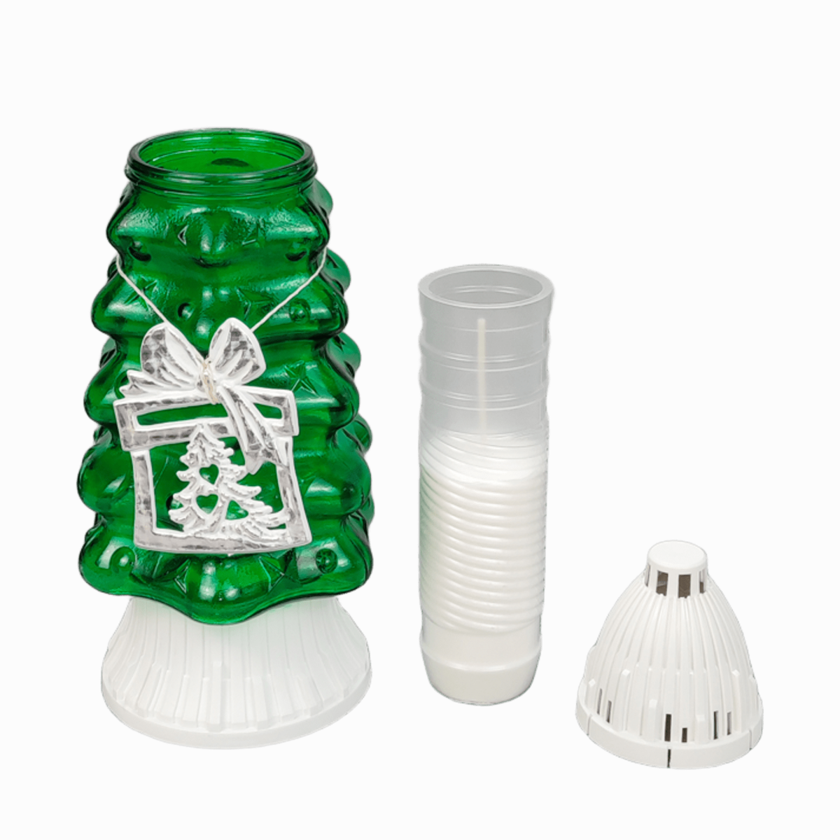 Лампадка скляна новорічна ялинка з оздобою Різдвяний подарунок CH-3 Ozdoba 30см