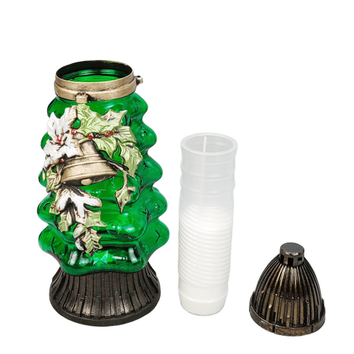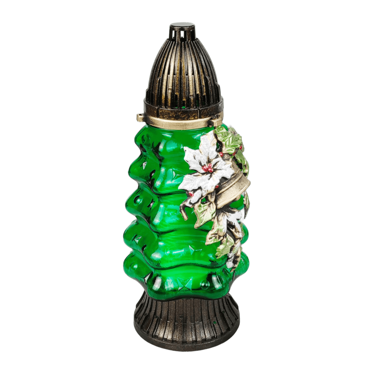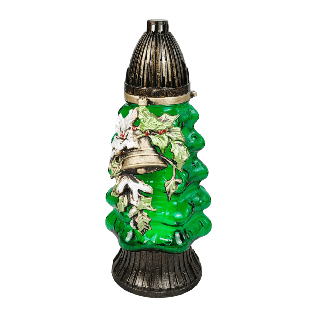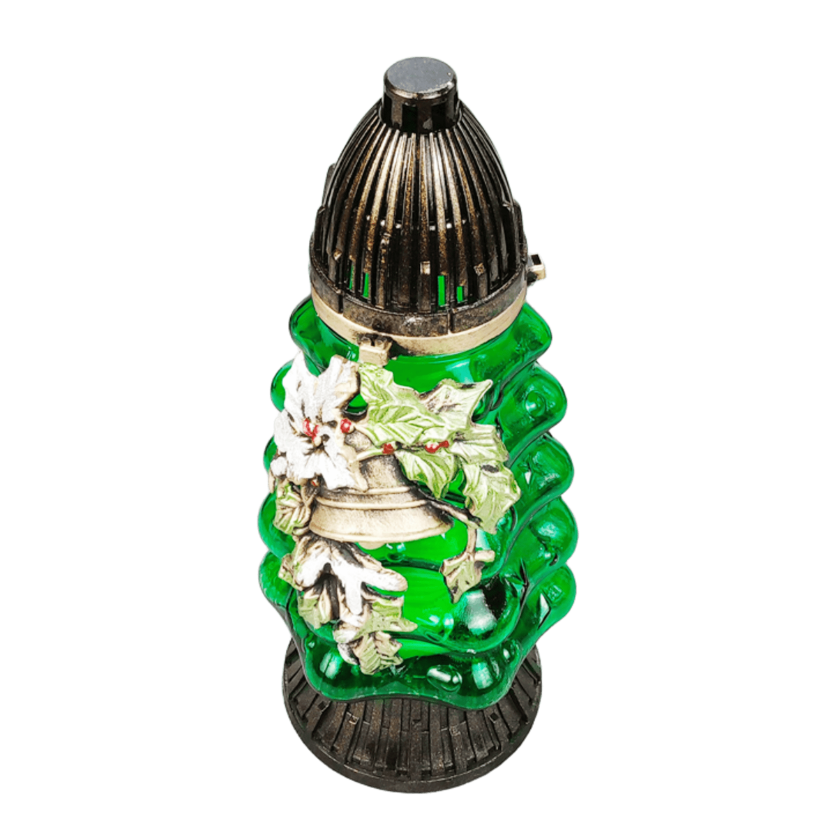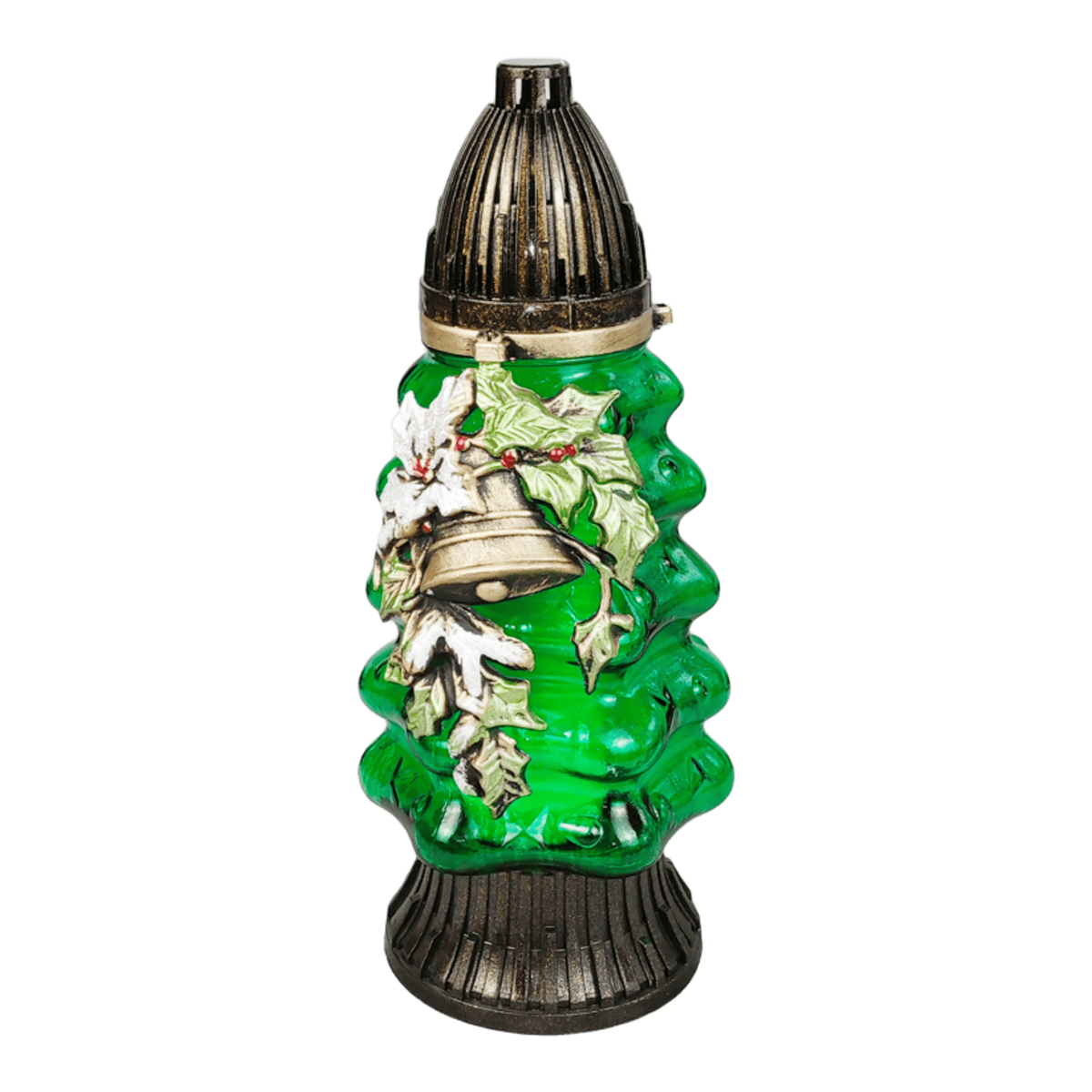 Лампадка скляна новорічна ялинка з накладною аплікацією Різдвяні Дзвони CH-3Apl 28см