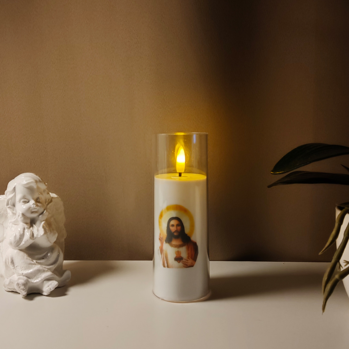 Свічка Led у прозорому циліндрі із зображенням Ісус з німбом Sunlight 15 см