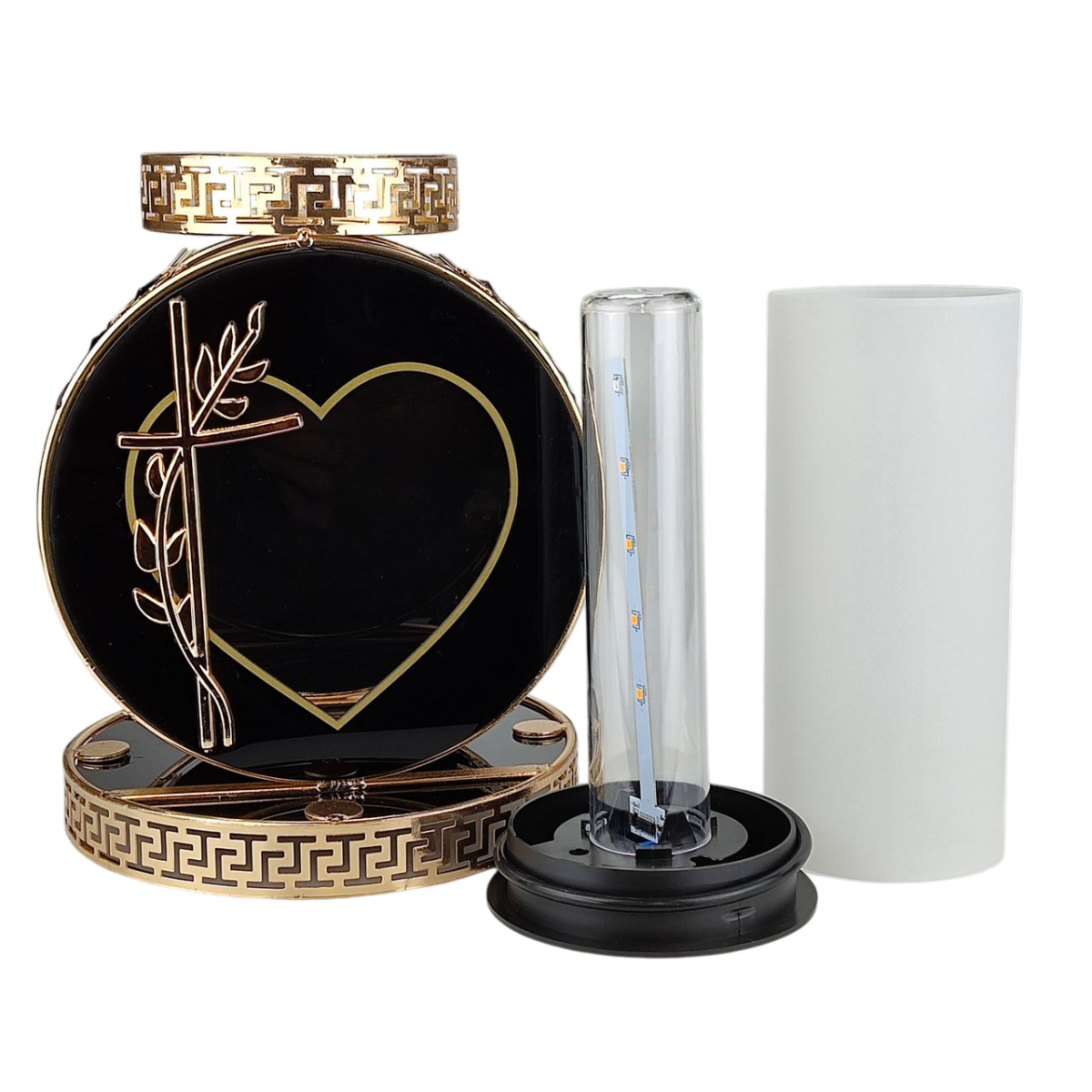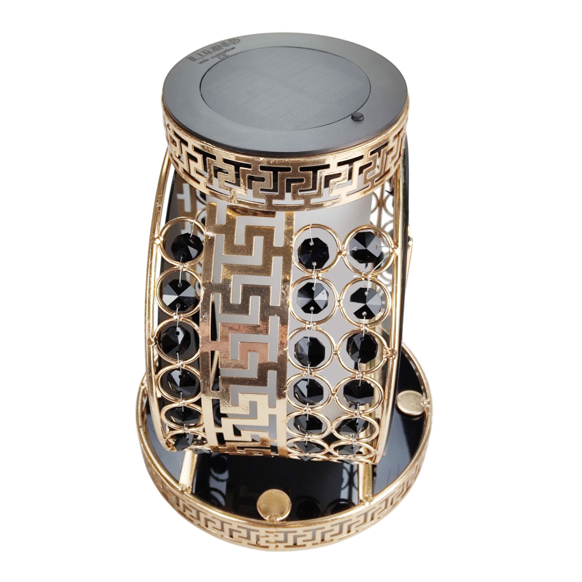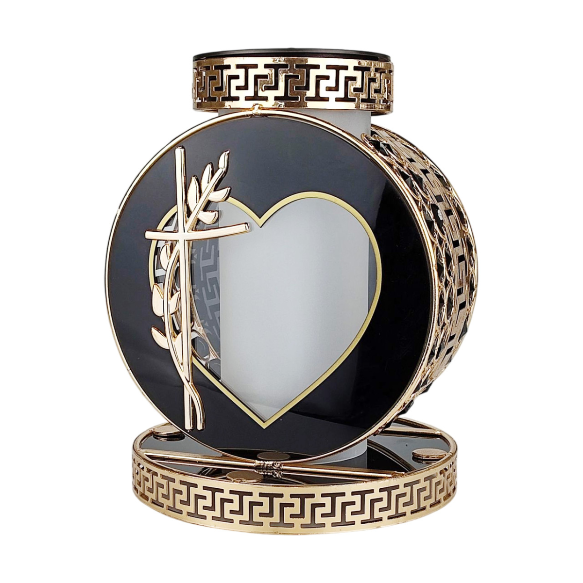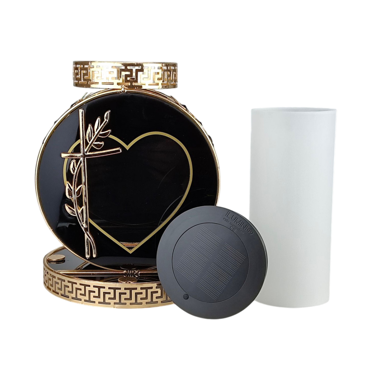 Лампадка велика ажурна золотиста на сонячній батареї Witraz Serce Premium Black
