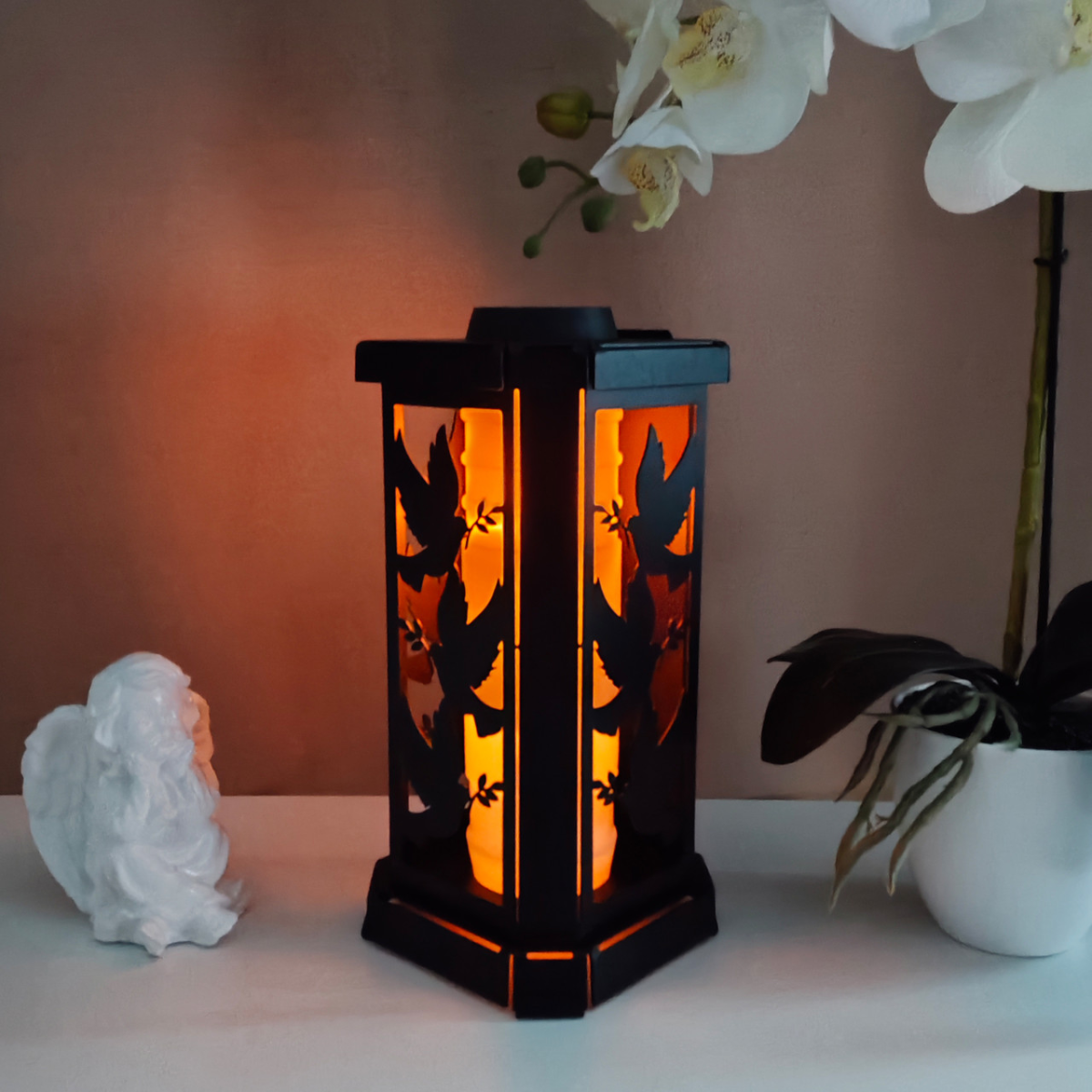Металева сонячна лампадка з реалістичним полум“ям – елегантне та сучасне рішення, що поєднує традиції з інноваціями. Завдяки сонячній енергії вона не потребує батарейок чи змінних вкладів, а її унікальний світловий ефект точно імітує природний, живий вогонь. Міцний металевий корпус забезпечує стійкість до погодних умов, а ніжно мерехтливе полум“я створює унікальну атмосферу спогадів та споглядання.