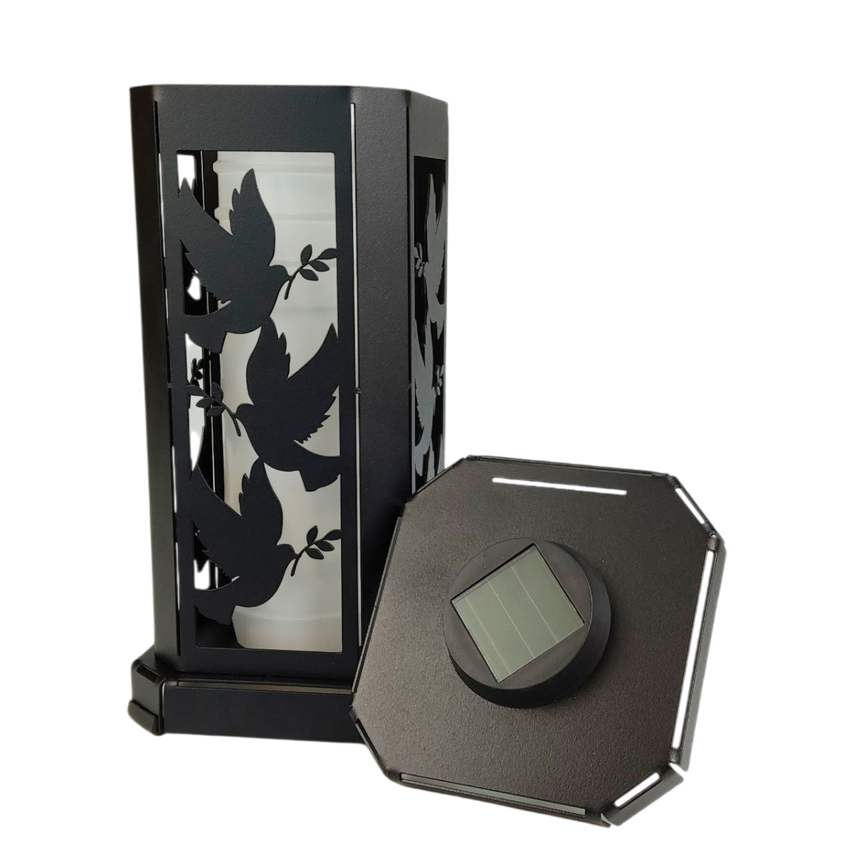 Сучасна лампадка на сонячній батареї. Міцний, добре підігнаний виріб, виготовлений з високоякісного металу покритий порошковим фарбуванням, що забезпечує довговічність служби виробу.