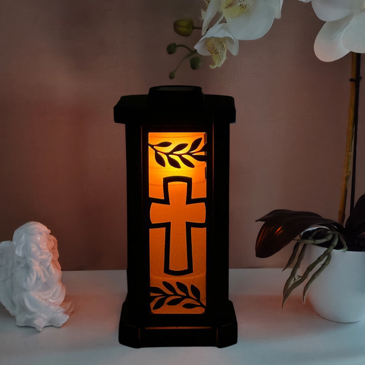Сучасна лампадка на сонячній батареї. Міцний, добре підігнаний виріб, виготовлений з високоякісного металу покритий порошковим фарбуванням, що забезпечує довговічність служби виробу.