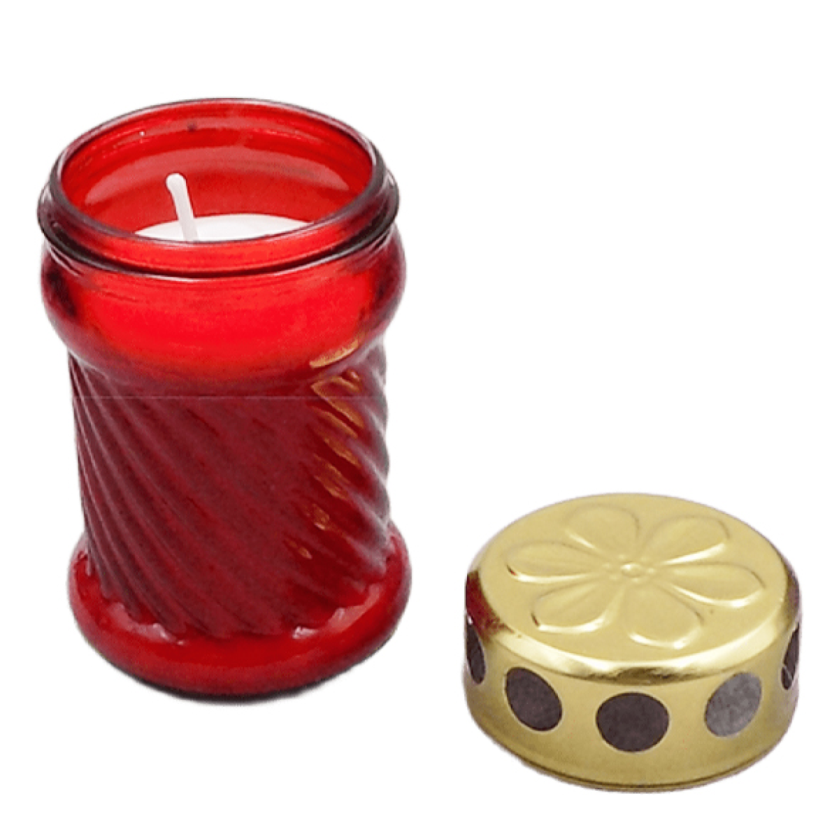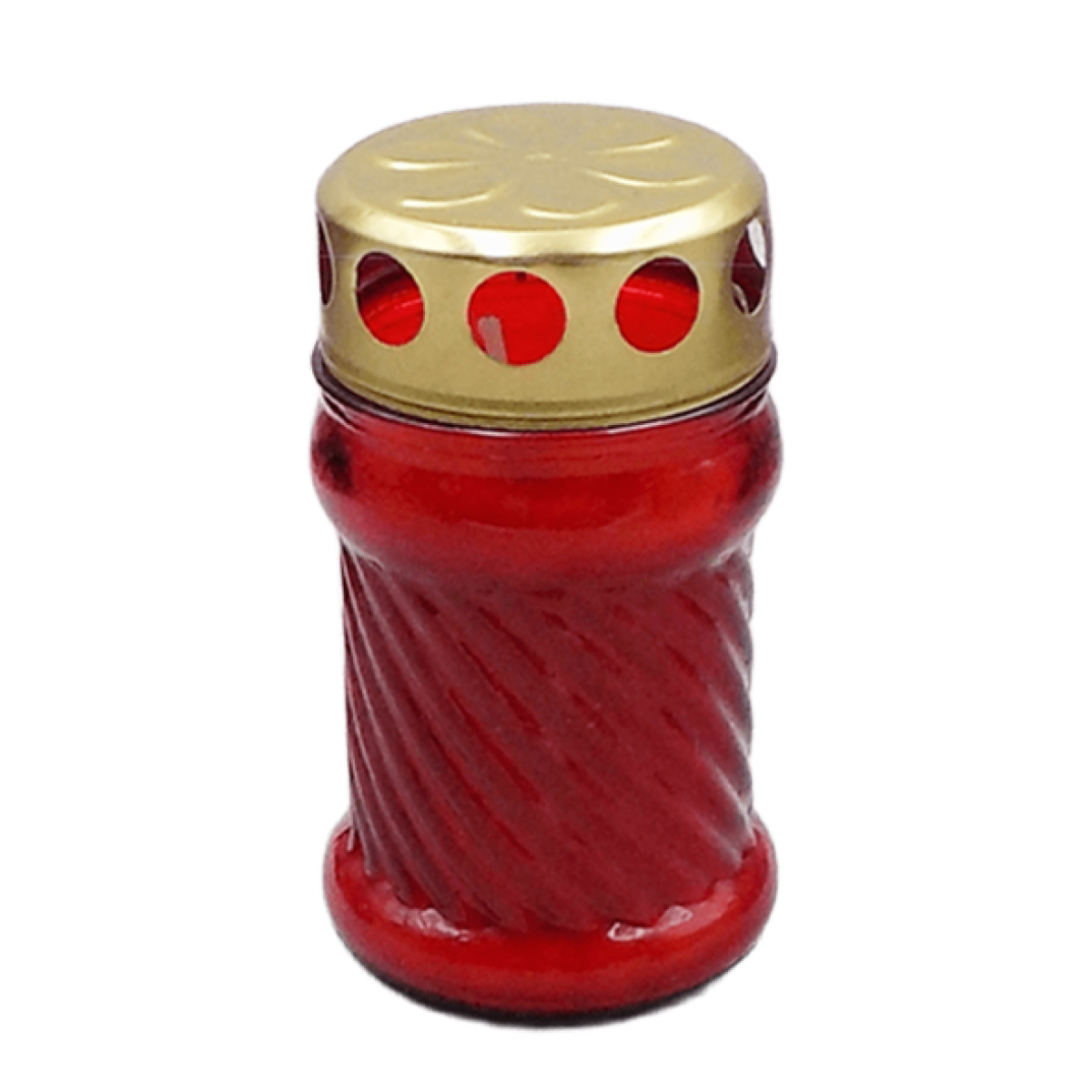 Наливна лампадка — це практичний і економний варіант ритуальної свічки для використання на кладовищі, меморіалах або місцях пам’яті. Виріб виготовлений зі скляної ємності зі стійкою основою та декоративною рельєфною поверхнею, що надає лампадці естетичного вигляду. Верхня металева кришка має вентиляційні отвори, які забезпечують стабільне горіння свічки та захист полум’я від вітру.
