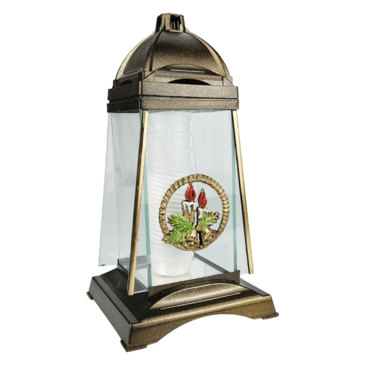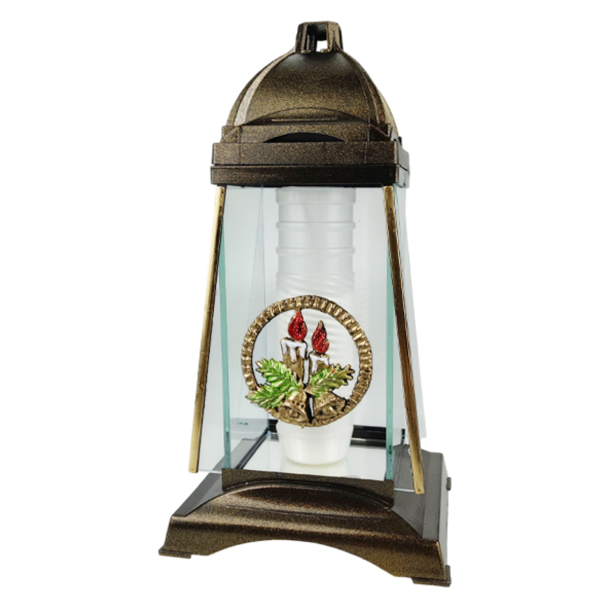 Лампадка новорічна скляна з декором двох свічок Trapez-3