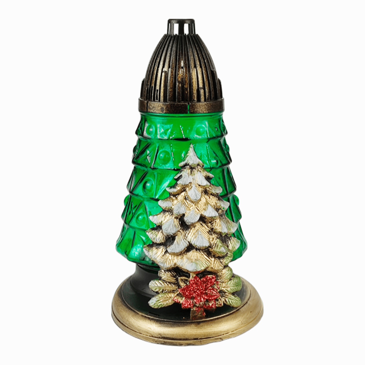 Лампадка новорічна скляна Святкова ялинка середня CH-2 24см
