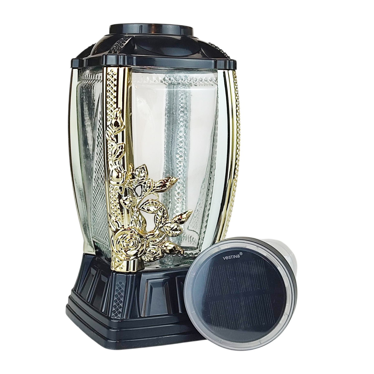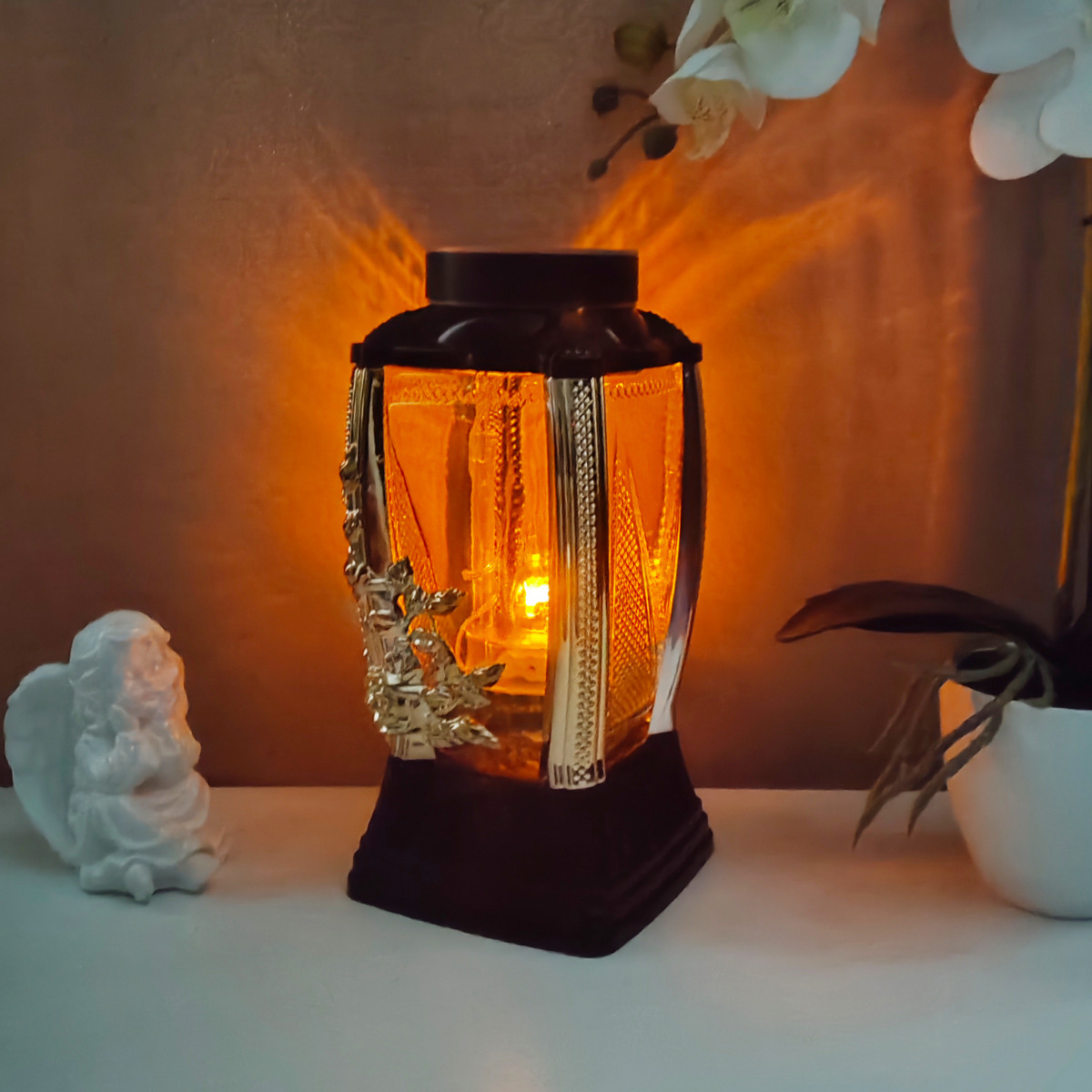 Оснащена сонячною батареєю, що автоматично заряджається від денного світла та забезпечує м’яке тепле сяйво у темну пору доби. Лампадка має якісний корпус, стійкий до опадів, морозу та ультрафіолету.