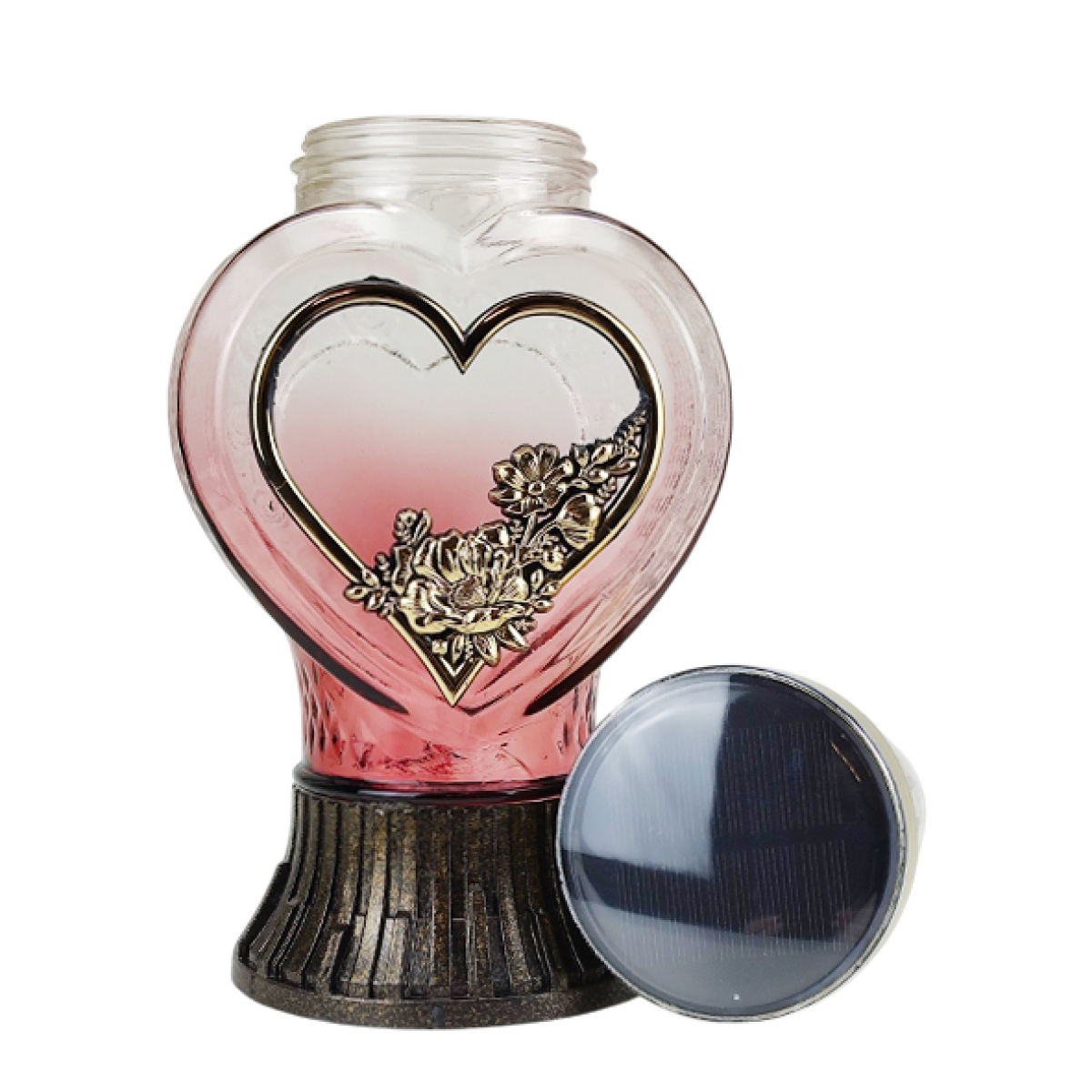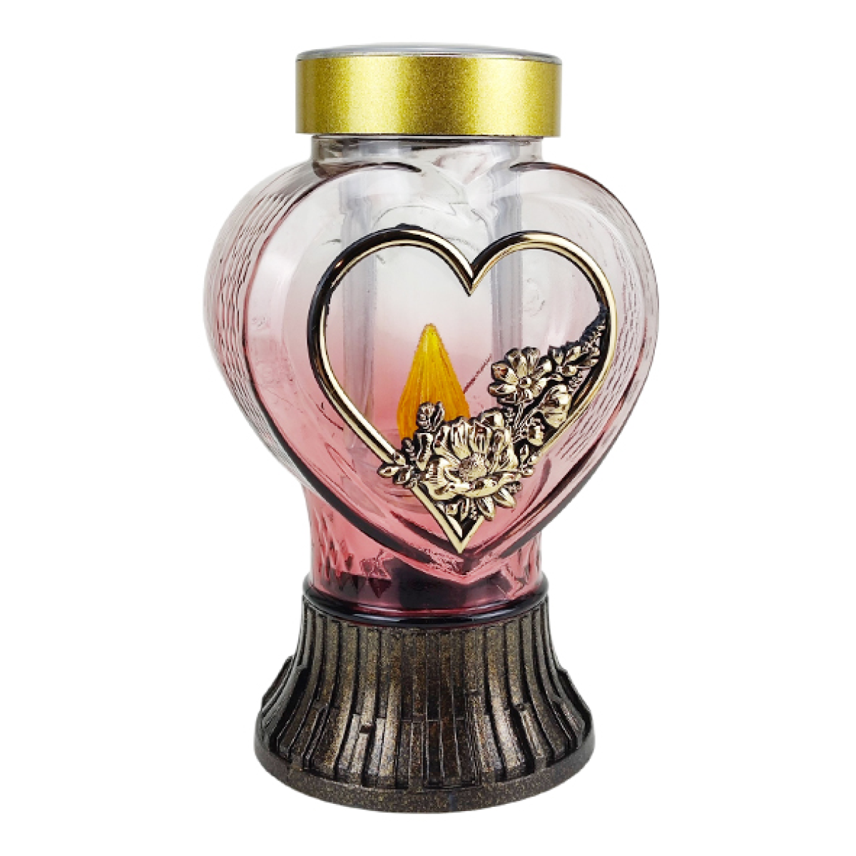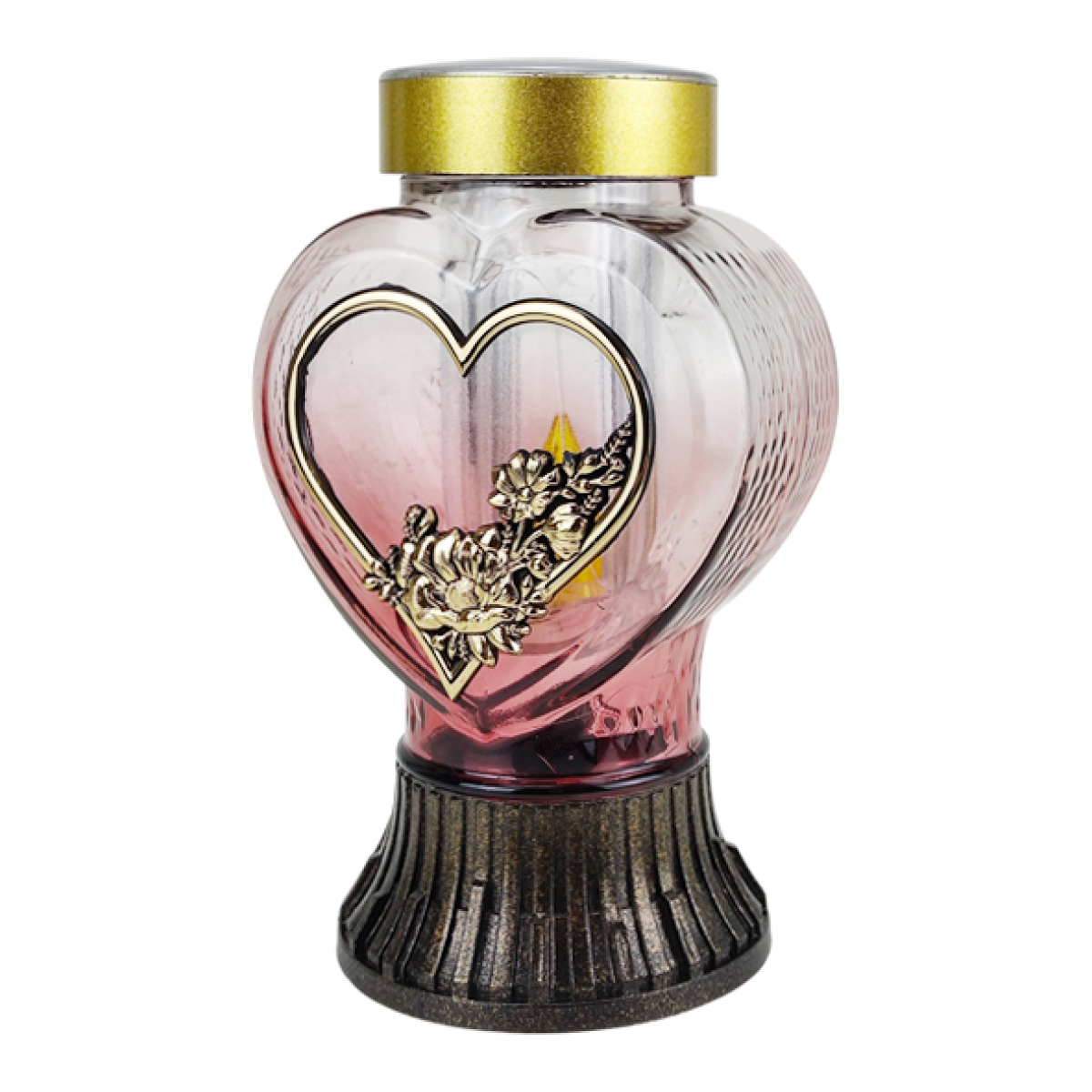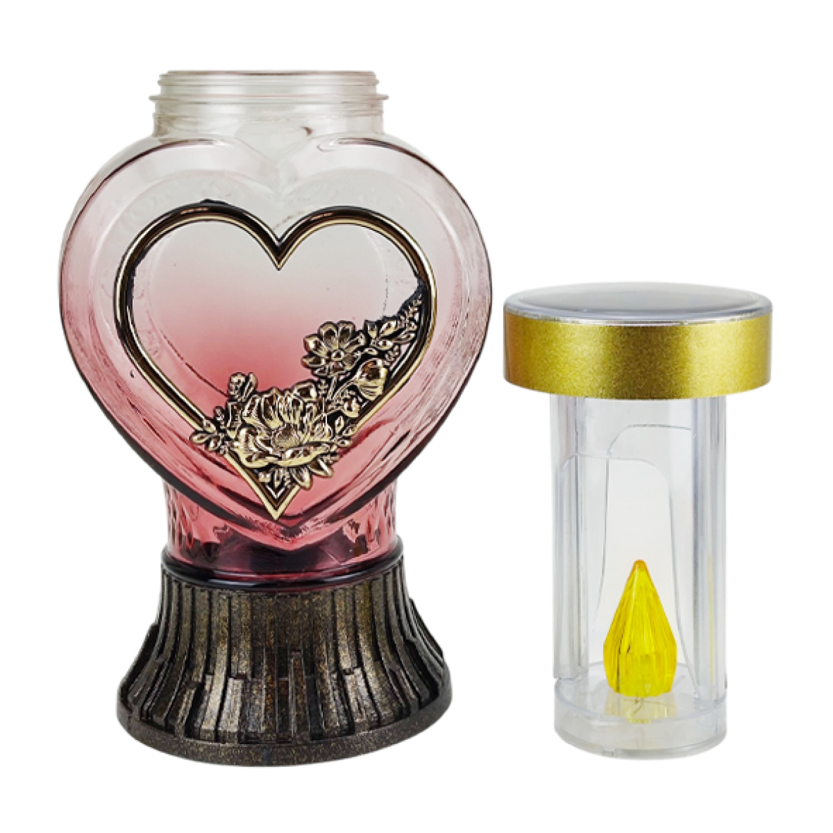 Декоративна лампадка на сонячній батареї у формі серця — сучасне та практичне рішення для вшанування пам’яті близьких. Завдяки елегантному дизайну у вигляді серця з декоративним квітковим орнаментом лампадка символізує любов, пам’ять і світло, що зберігається у серці назавжди.