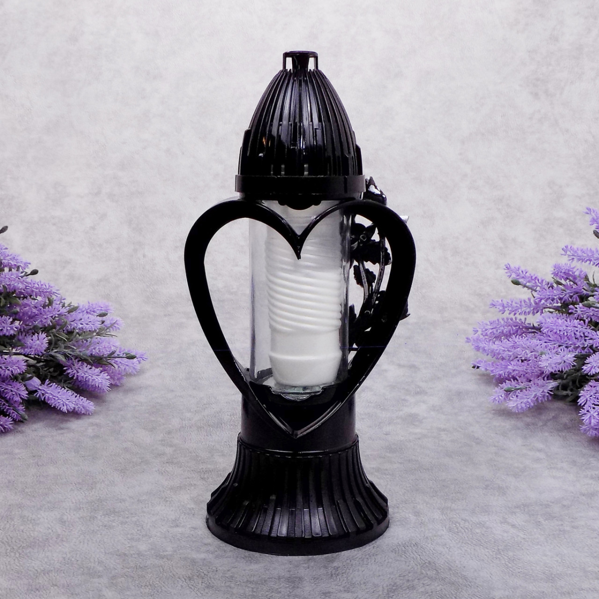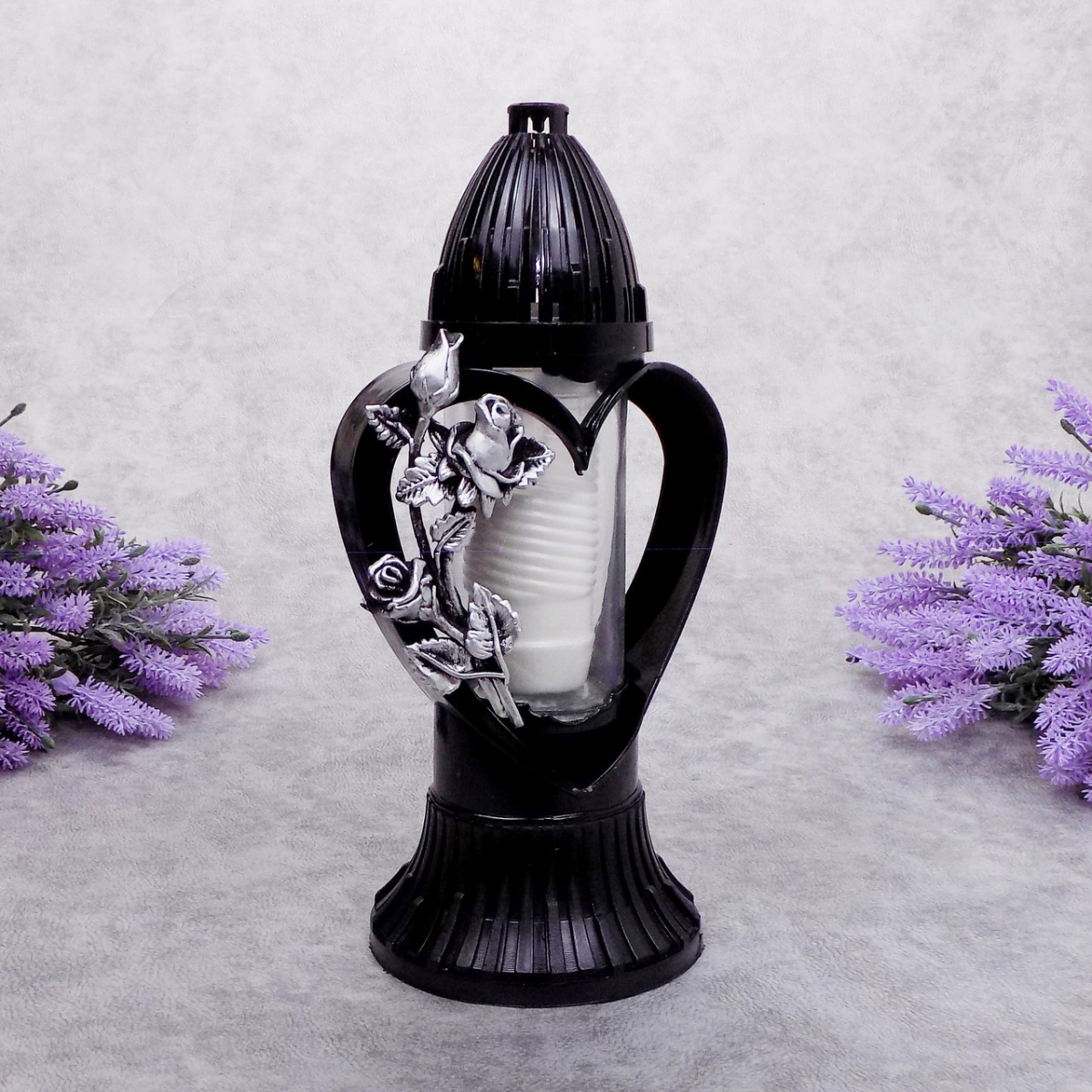 Лампадка середня Пам’ять у серці 3D чорна зі срібною трояндою
